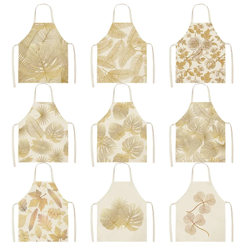 Фартуки для уборки дома и кухни с изображением золотых листьев, детские товары для дома, Кухонные фартуки для женщин, Кухонные фартуки