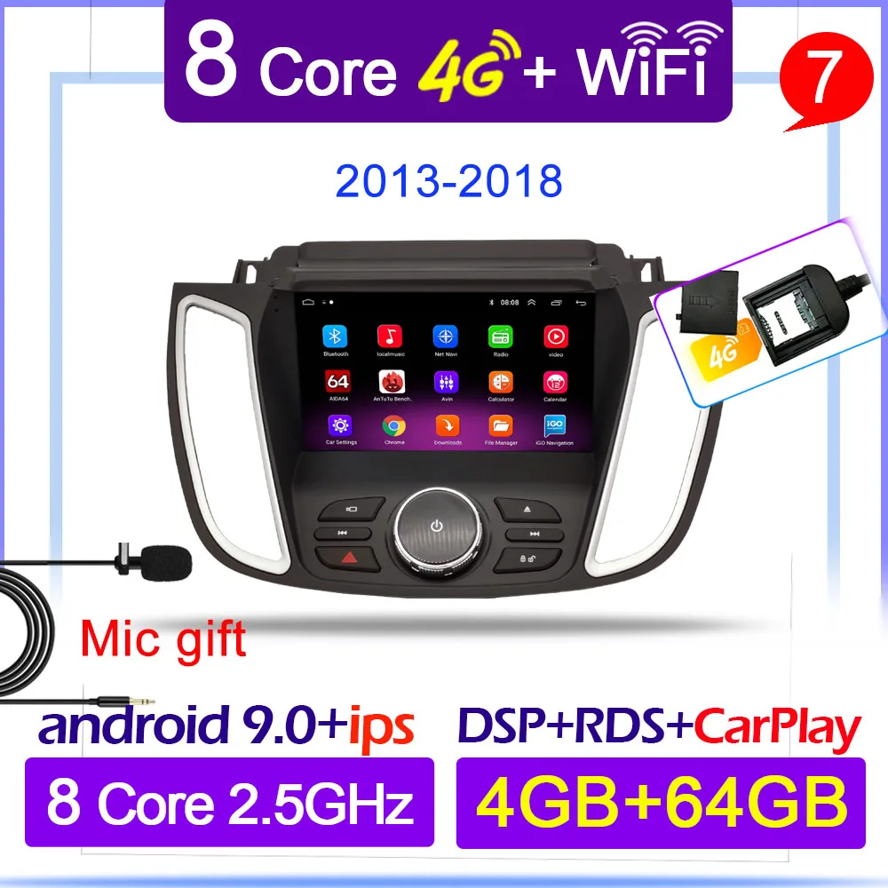 Автомобильный мультимедийный проигрыватель на Android 10 для Ford Kuga Escape 2013-2016, радио, видеоплеер, навигация GPS, 2 Din 2din