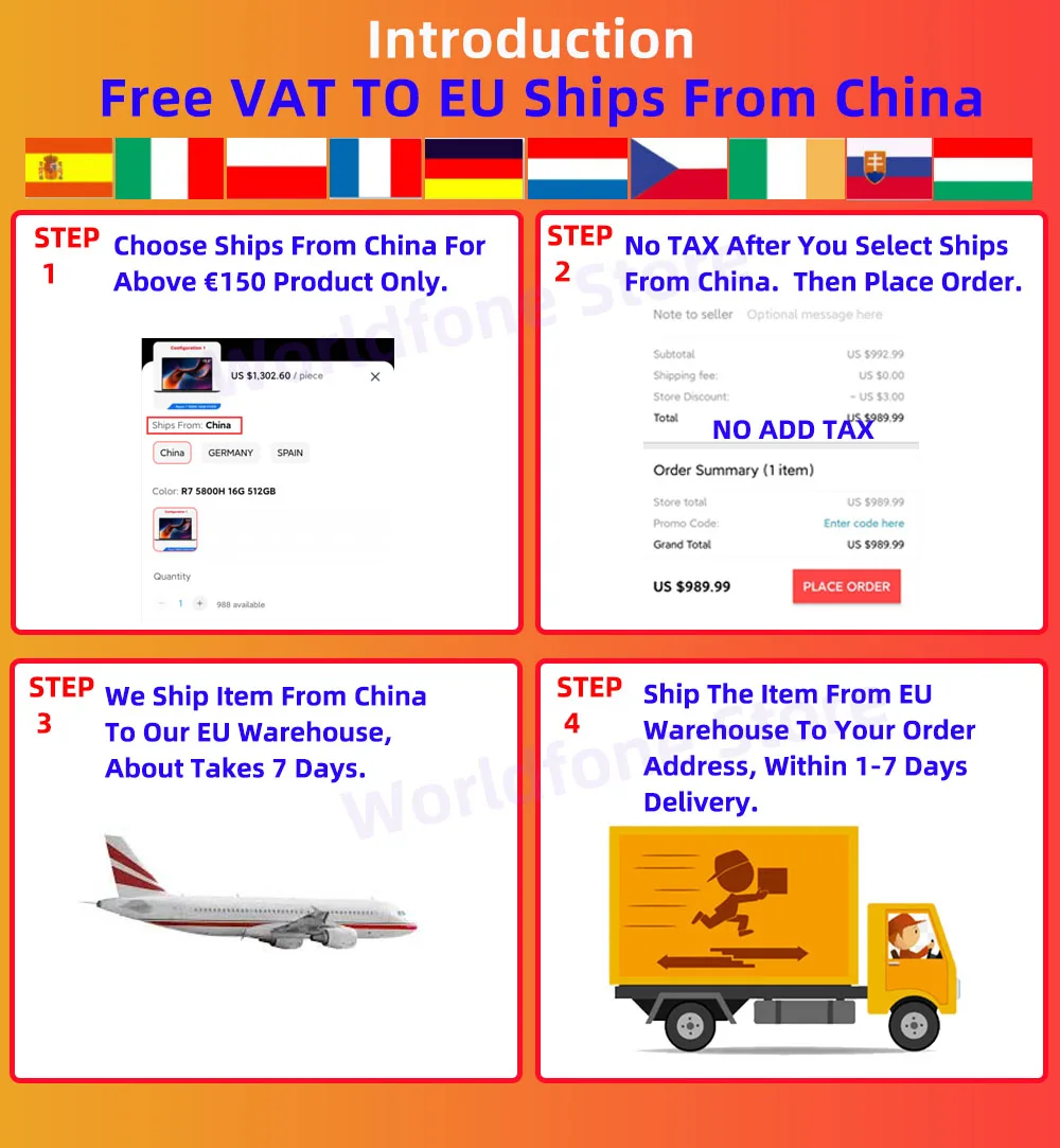 【Выберите доставку из Китая в страны ЕС для более чем 150 евро. Из-за того, что наша компания уже уплатила НДС и налог DDP в налоговый Отдел ЕС.После того, как вы выберете доставку из Китая. На самом деле. Мы отправляем товары со склада ЕС, как правило, в наличии товары могут быстро доставляться в течение 1-7 дней.Более подробная информация: