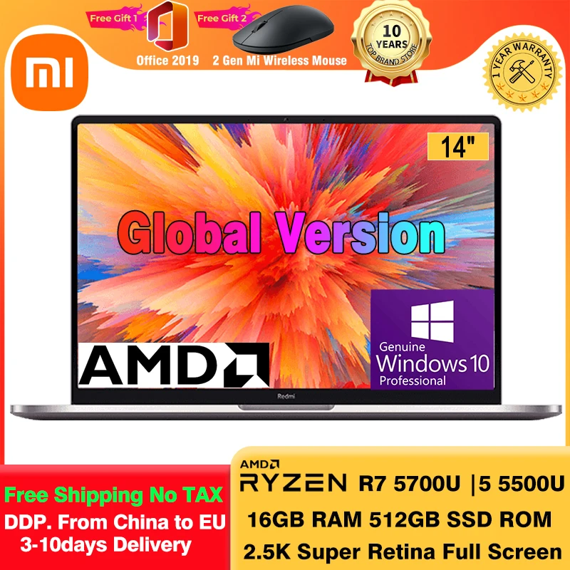 Ноутбук Xiaomi Mi RedmiBook Pro 14, ноутбуки 2022 AMD Ryzen 7 5700U R5 5500U 16 Гб ОЗУ 512 SSD ПЗУ, 14 дюймов, компьютер Windows 10