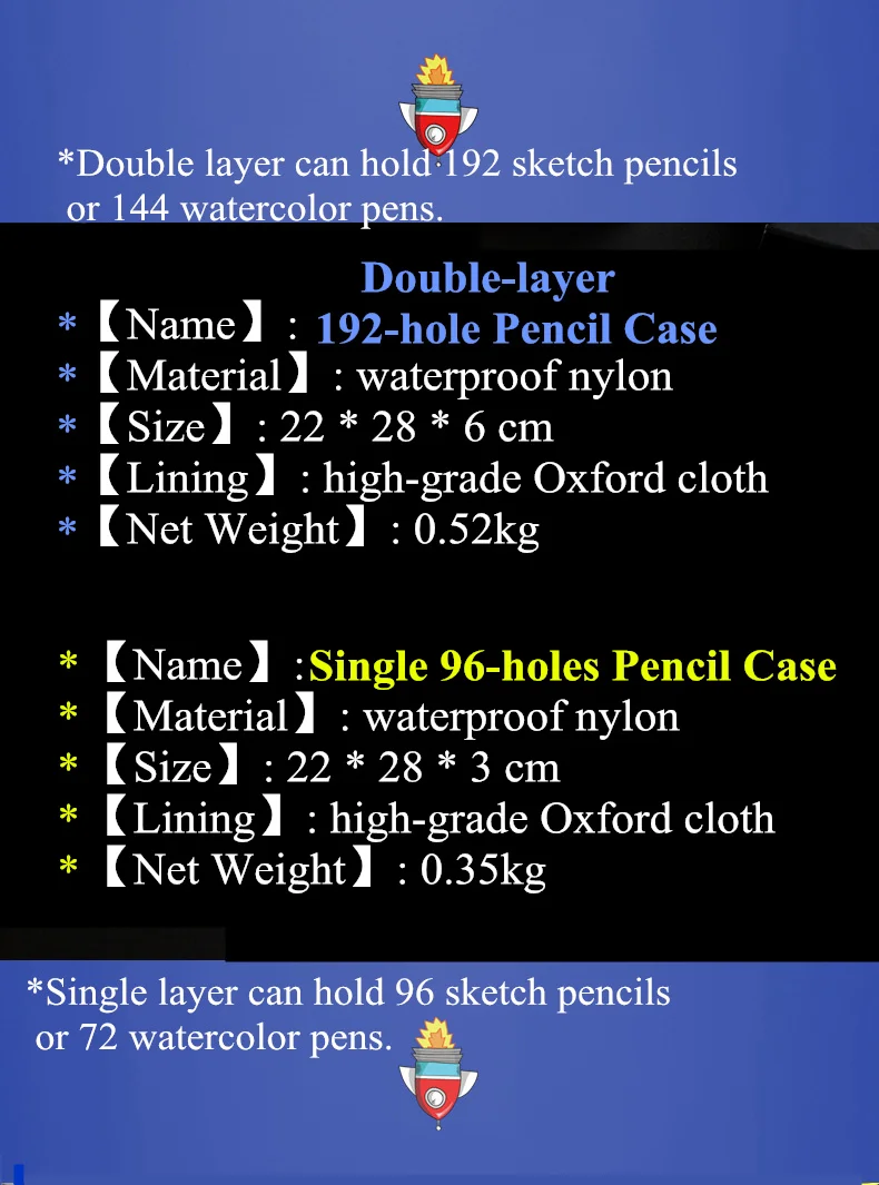 Чехол-карандаш Kawaii для офиса, 96 192 отверстий, водонепроницаемая нейлоновая сумка для акварельных художественных ручек, кистей, ручек сумка, школьные принадлежности