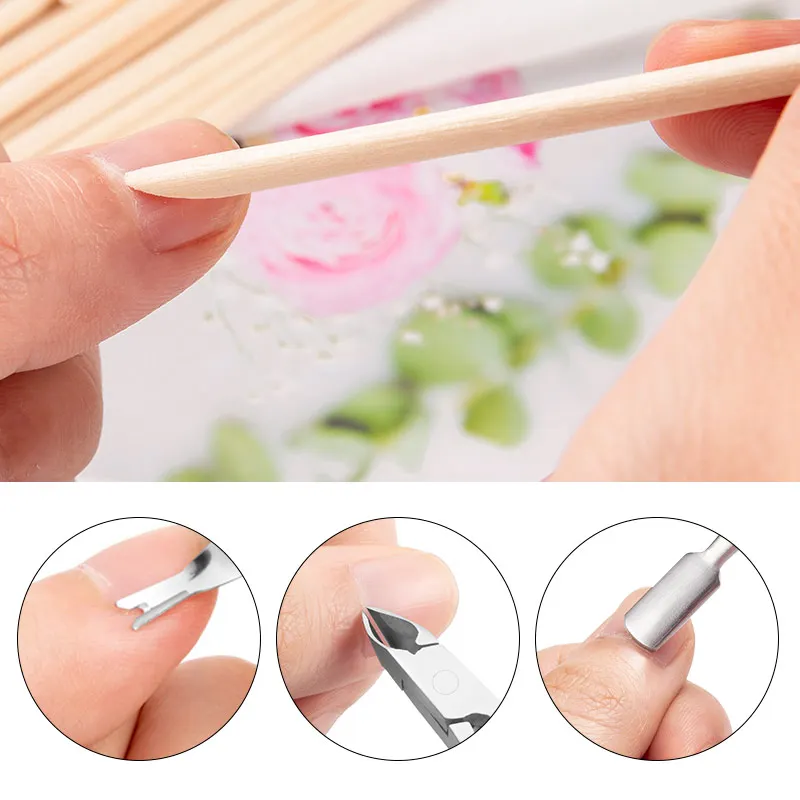 Набор инструментов для маникюра, из нержавеющей стали, с деревянной палочкой