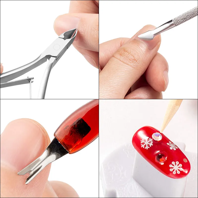 Набор для дизайна ногтей из нержавеющей стали, машинка для стрижки лака, резак для снятия омертвевшей кожи, инструменты для маникюра, деревянная ручка для сбора точечек