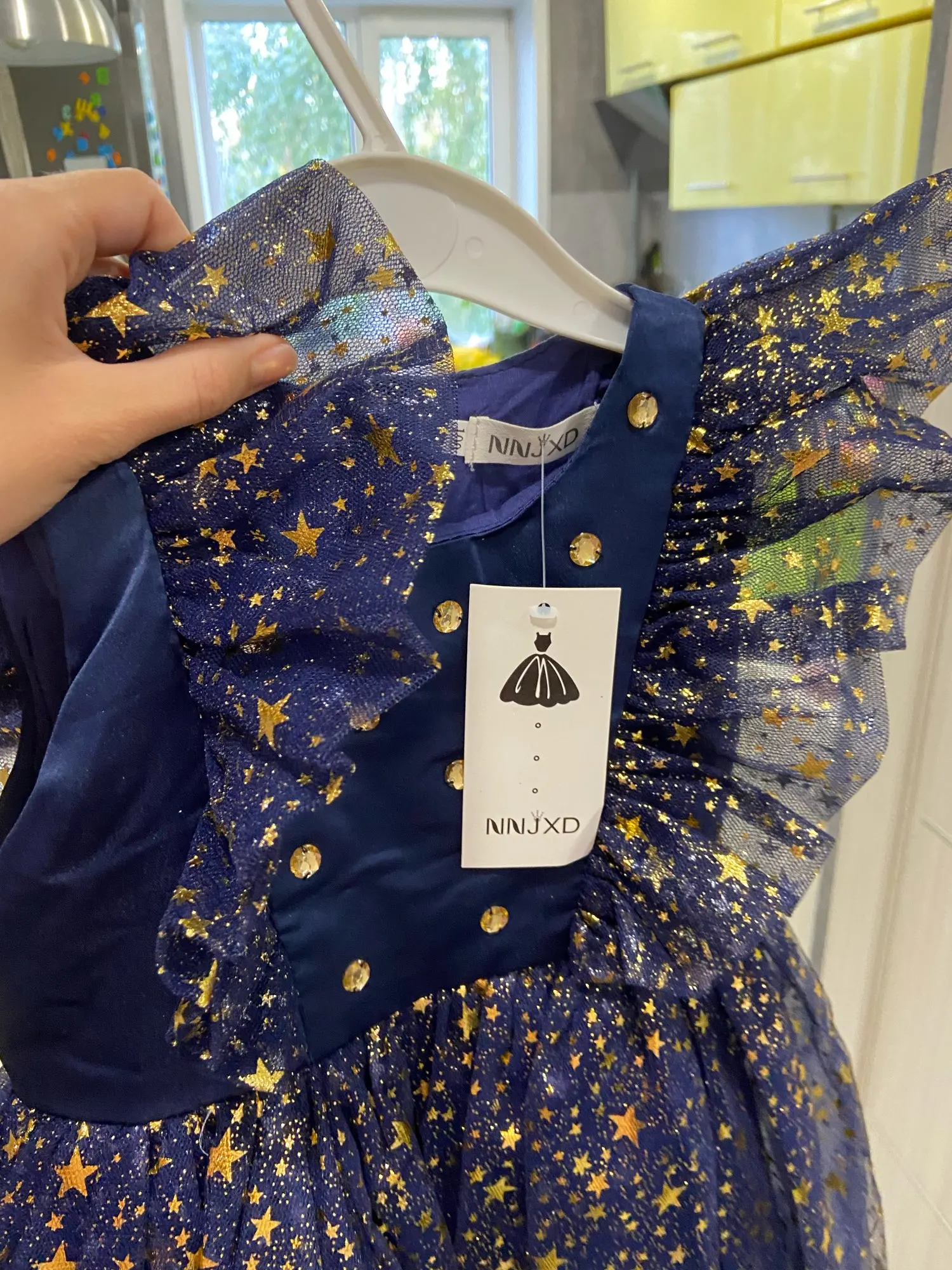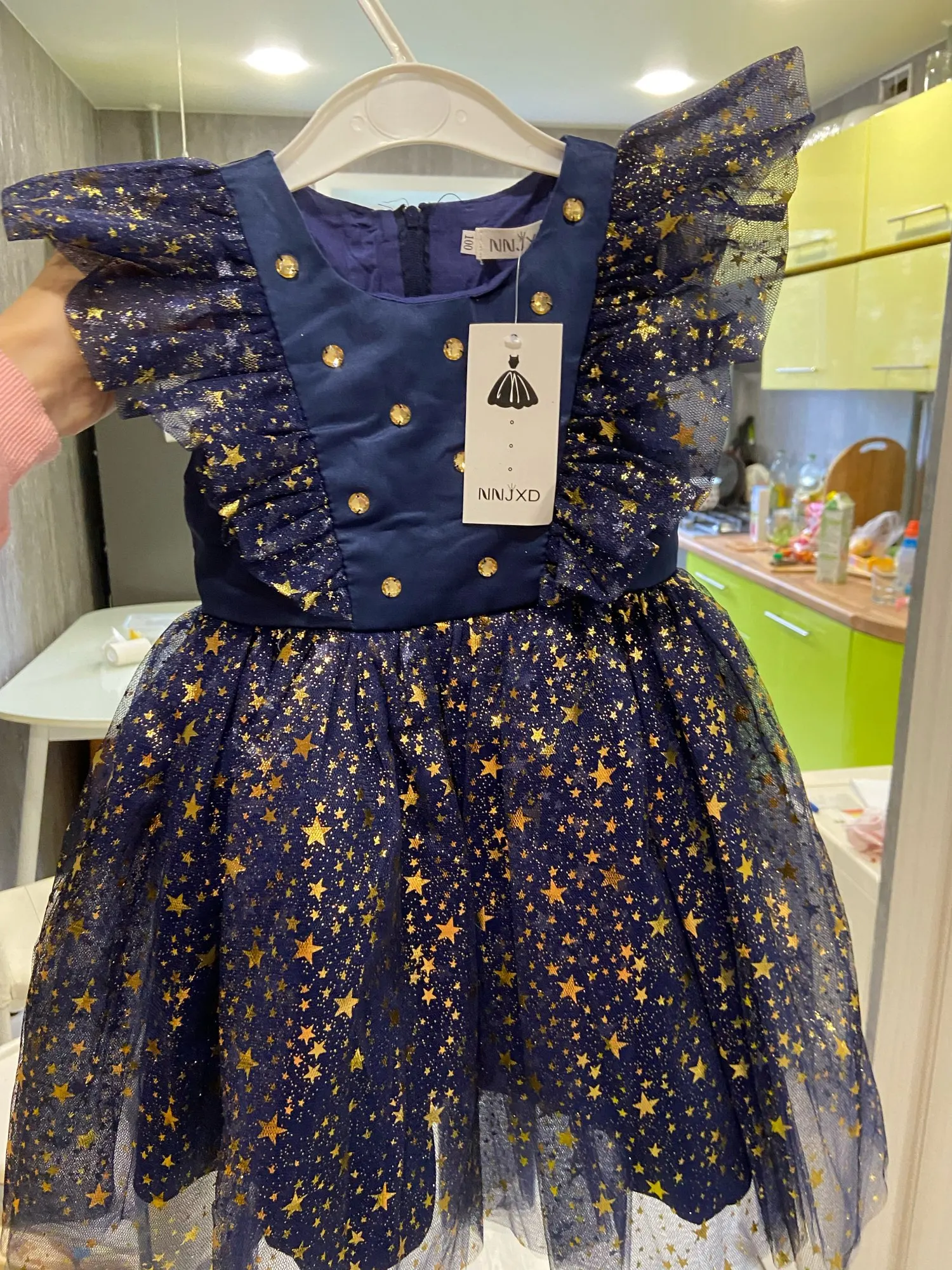 прекрасное платье , на 110 см заказала 5Т , чуть коленки закрывает , очень красивое