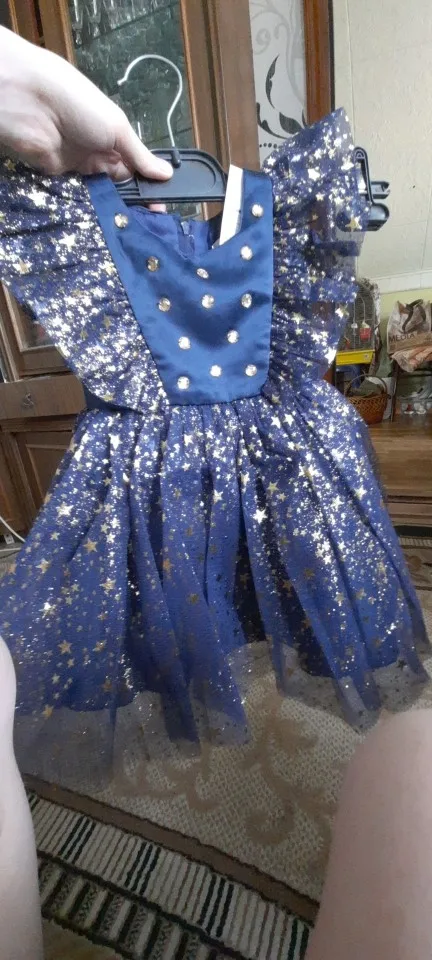 пришло дней за 12 до спб, отслеживалось на всем пути по цвету темно-синее, пышное. размер 100 на платье указан,брала 3Т, ребенку 2.9года подошло, еще и дальше успеет одеть симпатичное платье хороший продавец