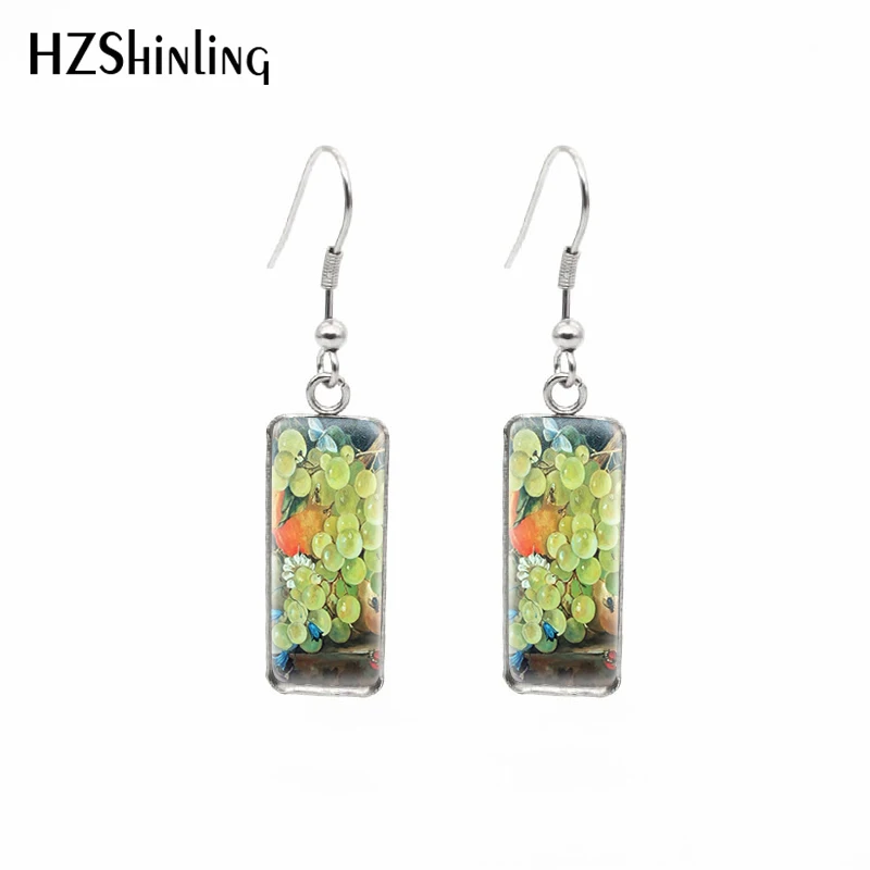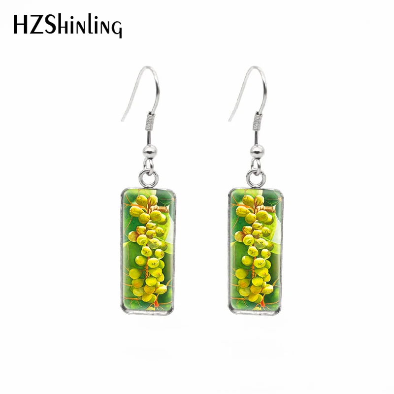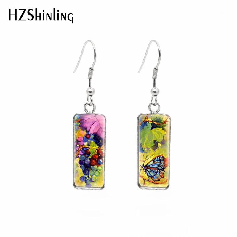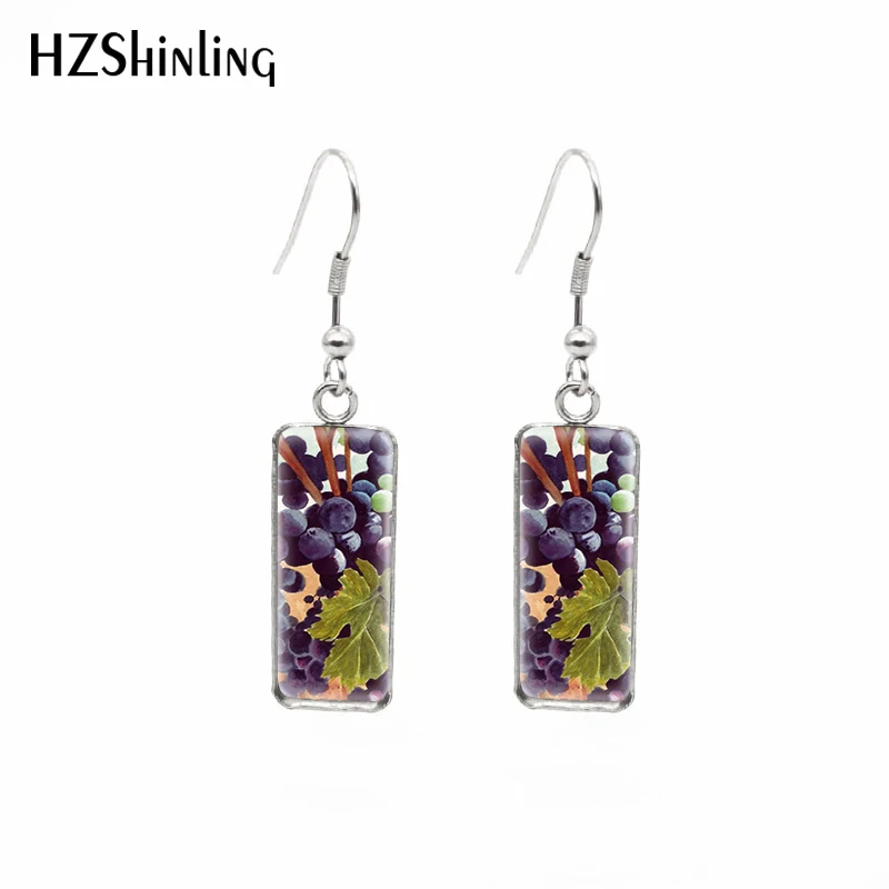 Новинка 2021, фиолетовые прямоугольные серьги в виде винограда, летние серьги-Крючки с масляной живописью, стеклянный кабошон, ювелирные изделия ручной работы