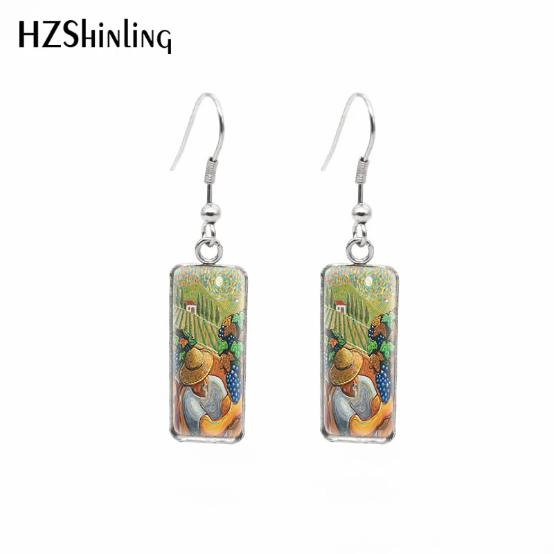 Серьги-Крючки с картиной Ван Гога, прямоугольные серьги Звездная но...