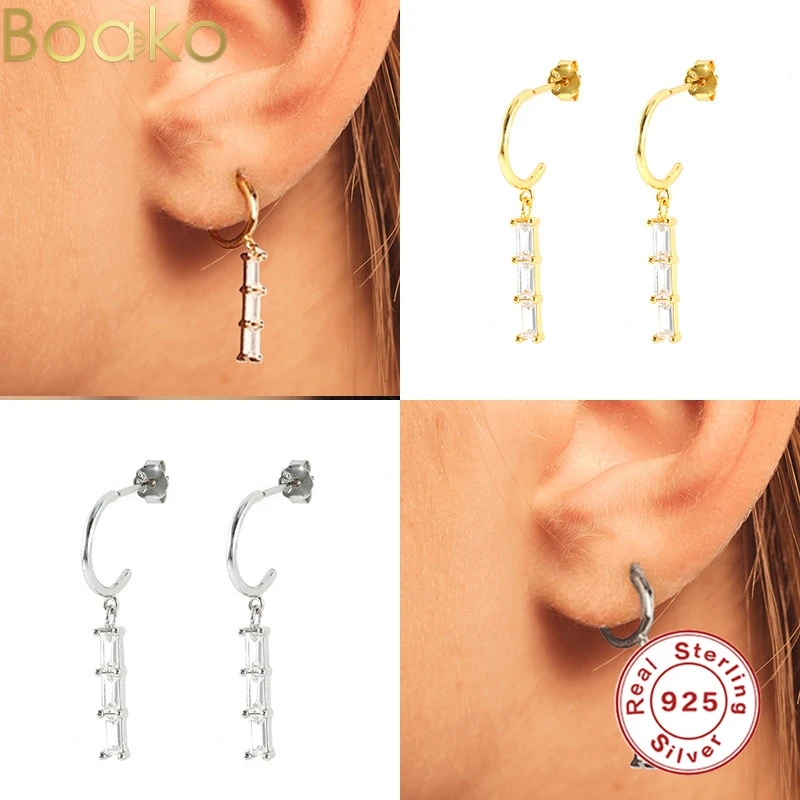 Женские серьги-гвоздики BOAKO, длинные геометрические серьги-гвоздики из стерлингового серебра 925 пробы со змеиной цепочкой, 2 шт.