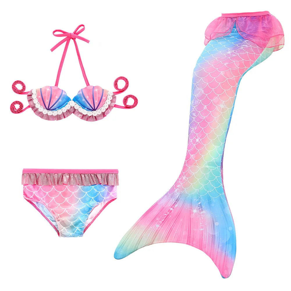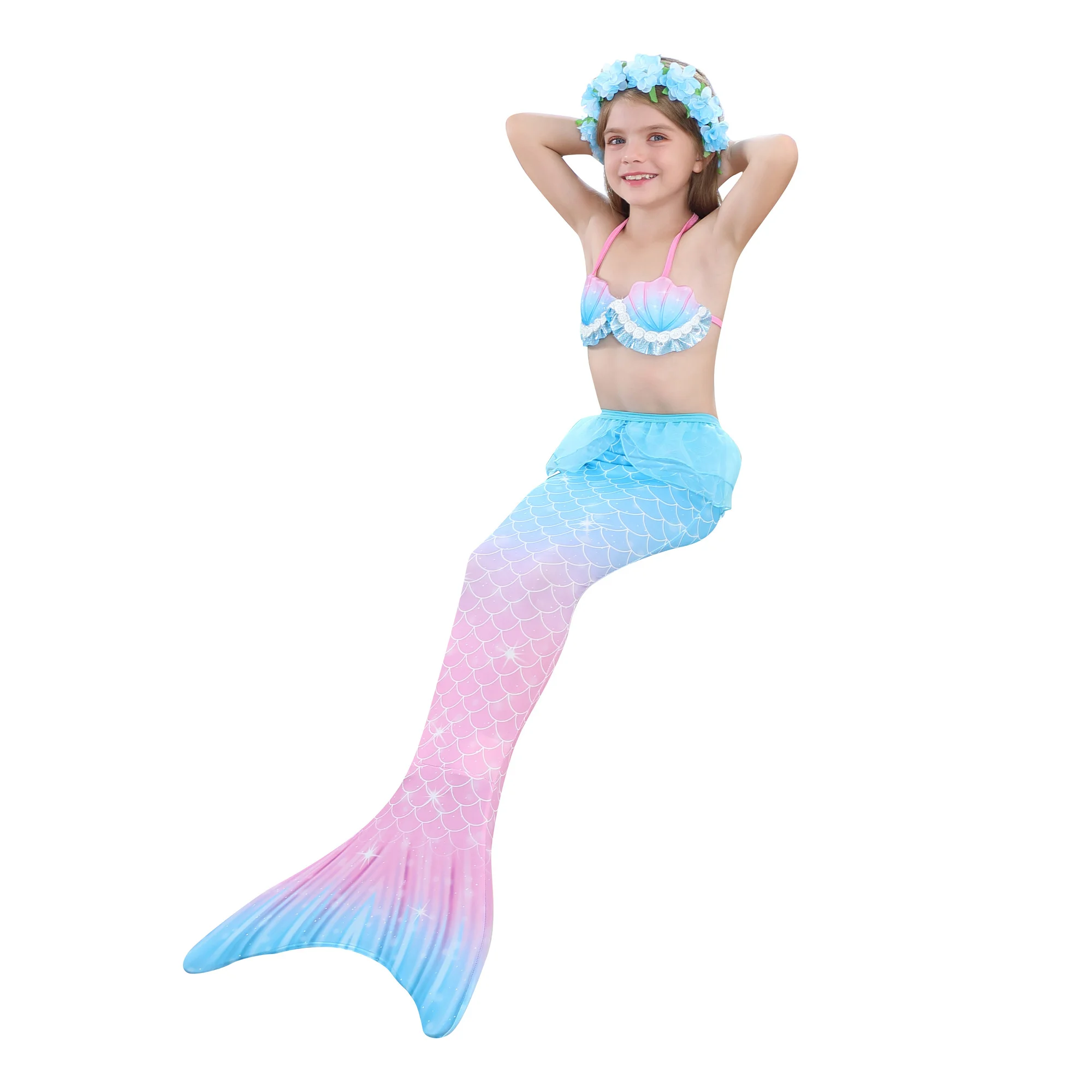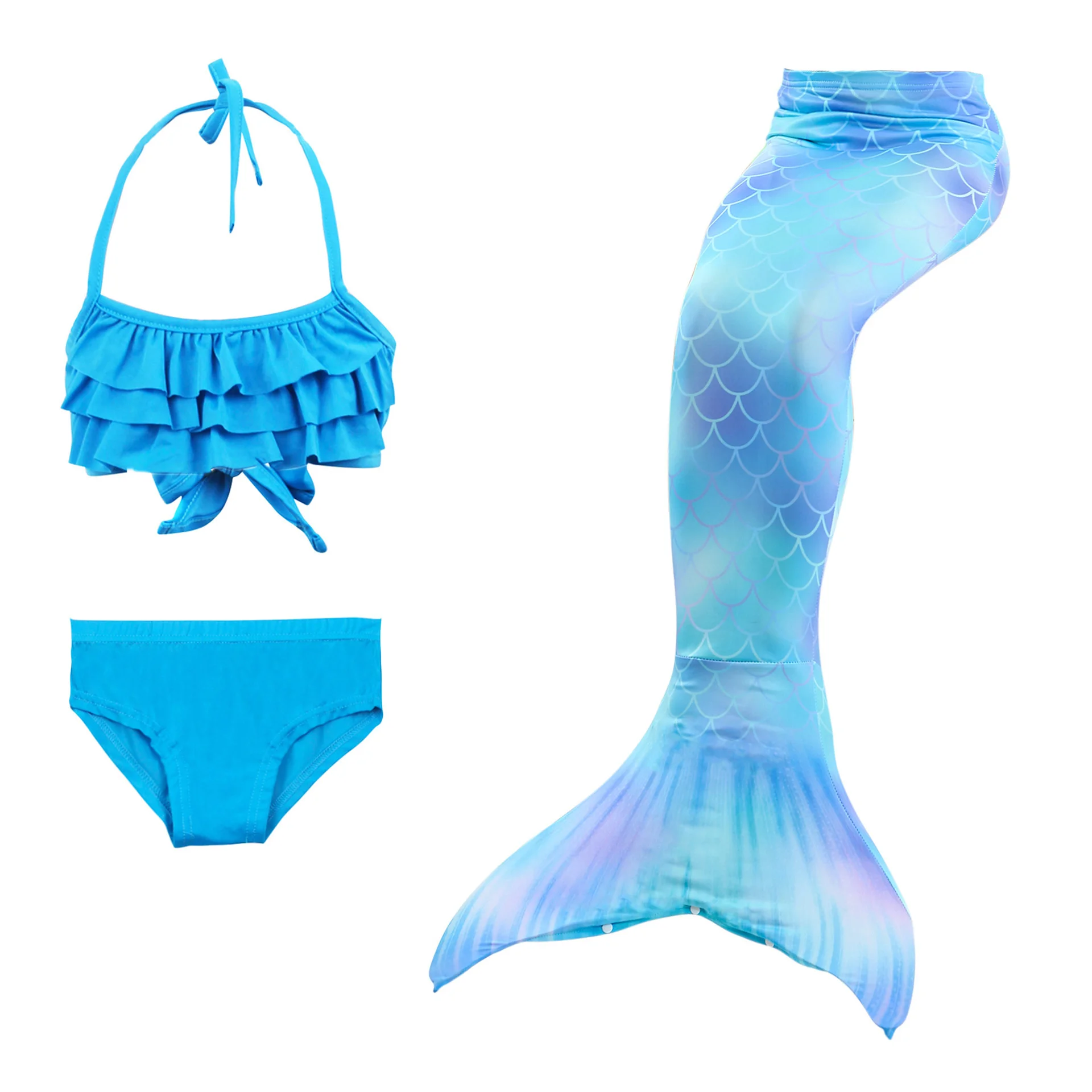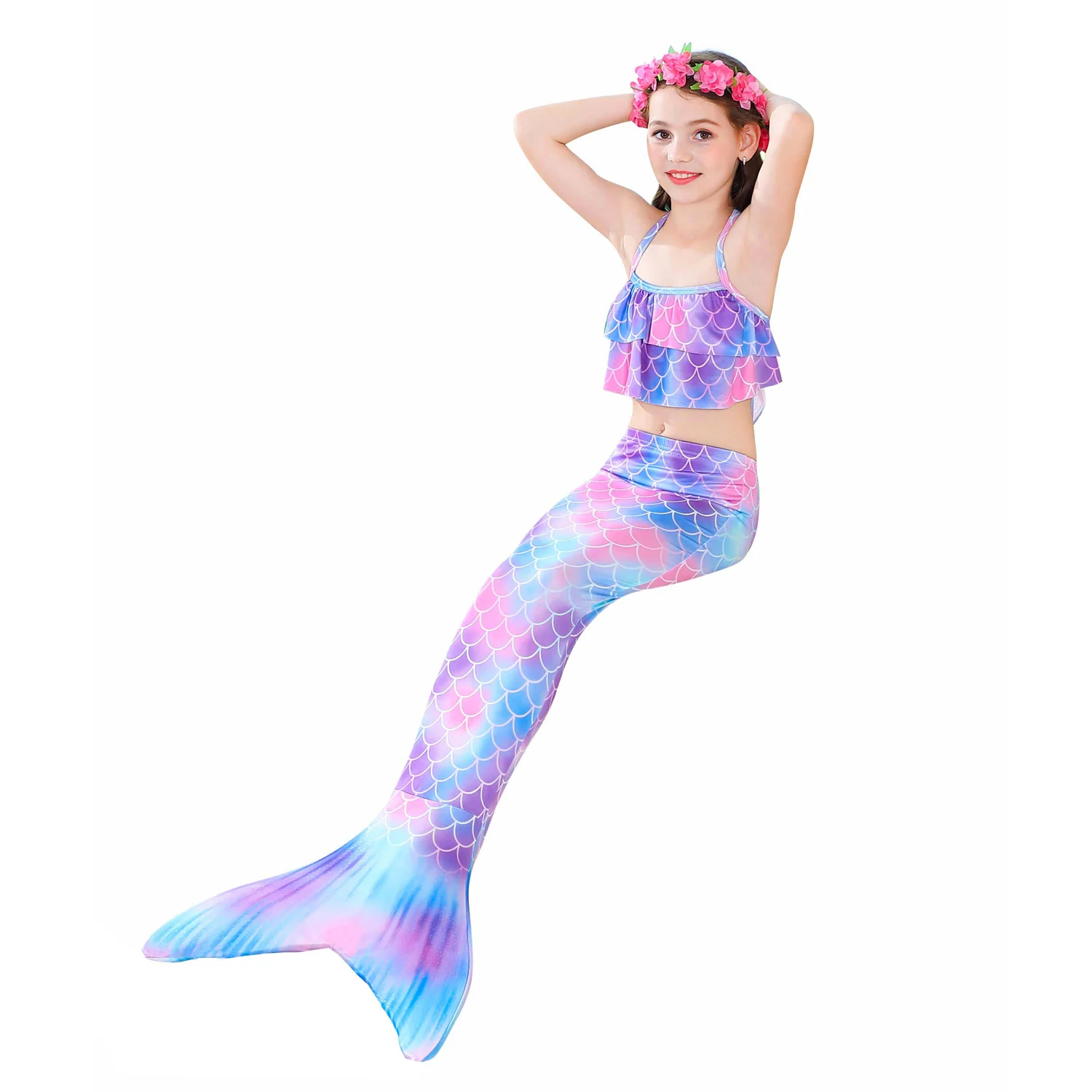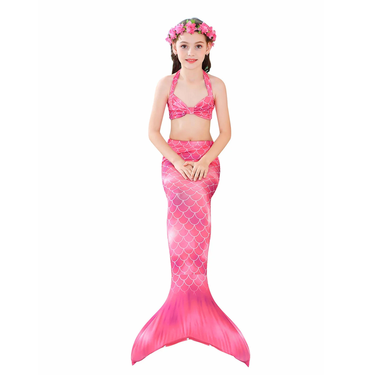 3 шт.компл. Детский костюм Русалочки с хвостом, необычный детский купальник для косплея Русалочки, костюм на Хэллоуин для девочек, без выскальзывания
