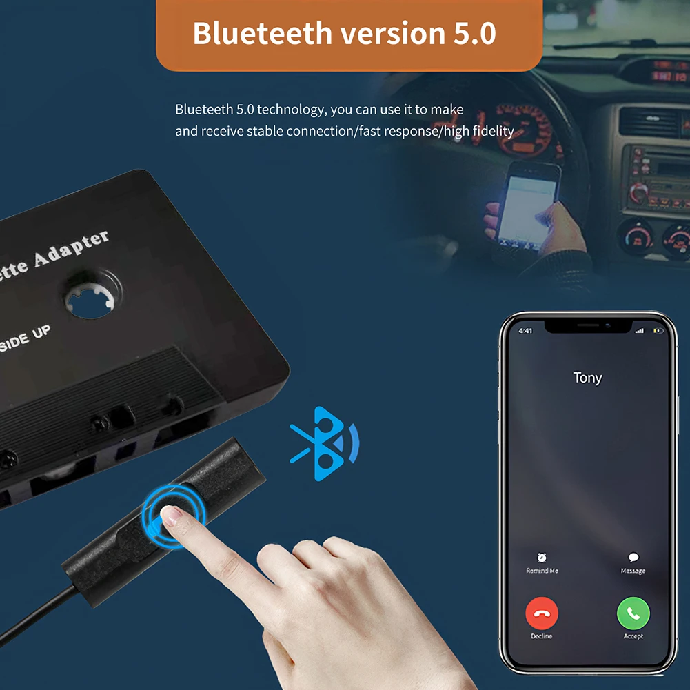 Универсальная кассета Aux стерео Музыка адаптер автомобильное аудио лент Bluetooth совместимым 5,0 MP3 плеер конвертер 3,5 мм разъем для наушников с микрофономХарактеристика:Конструкция ленты с сильной функцией, совместимой с Bluetooth, вы можете вставить кассету в автомобильный Кассетный плеер, затем подключить его к телефону Bluetooth, наслаждаться музыкой и громкой связи свободно и мгновенно.Встроенный микрофон, ленточный преобразователь поддерживает звонки без рук, легко ответить или завершить вызов с помощью одной кнопки. Вам не нужно держать телефон во время вождения или ходьбы.Перенял новейшие 5,0 Bluetooth-совместимый чип, чипс повторной обеспечивает более стабильную производительность, более устойчивым и лучше качество вызова, Расширенная совместимость и сильные функции, подсказать вам четкие, долговечный и непрерывного телефонный звонок и стерео музыки.Кассета имеет usb-порты и встроенную перезаряжаемую батарею емкостью 130 мА · ч, безопасная и долговечная, вы можете заряжать лампу в любое время, Подключаясь к зарядному устройству, ноутбуку или другим видам usb-адаптеров, удобных в использовании.Подходит для размещения в автомобиле, автомобиле и автомобиле, чтобы наслаждаться музыкой, громкой связью и другими функциями, совместимыми с Bluetooth.Спецификация:Материал: АБС-пластикВерсия Bluetooth: 5,0Цвет изделия: черныйИсточник питания: USBАккумулятор: встроенный аккумулятор 130 мАчРазмеры: 10*6,3*0,7 см/3,93*2,48 * 0.27inВес: 62 гПримечание:В связи с различиями мониторов и эффектами освещения реальный цвет товара может немного отличаться от цвета на фотографиях. Спасибо!Возможны отклонения в 1-2 см вследствие измерений вручную.