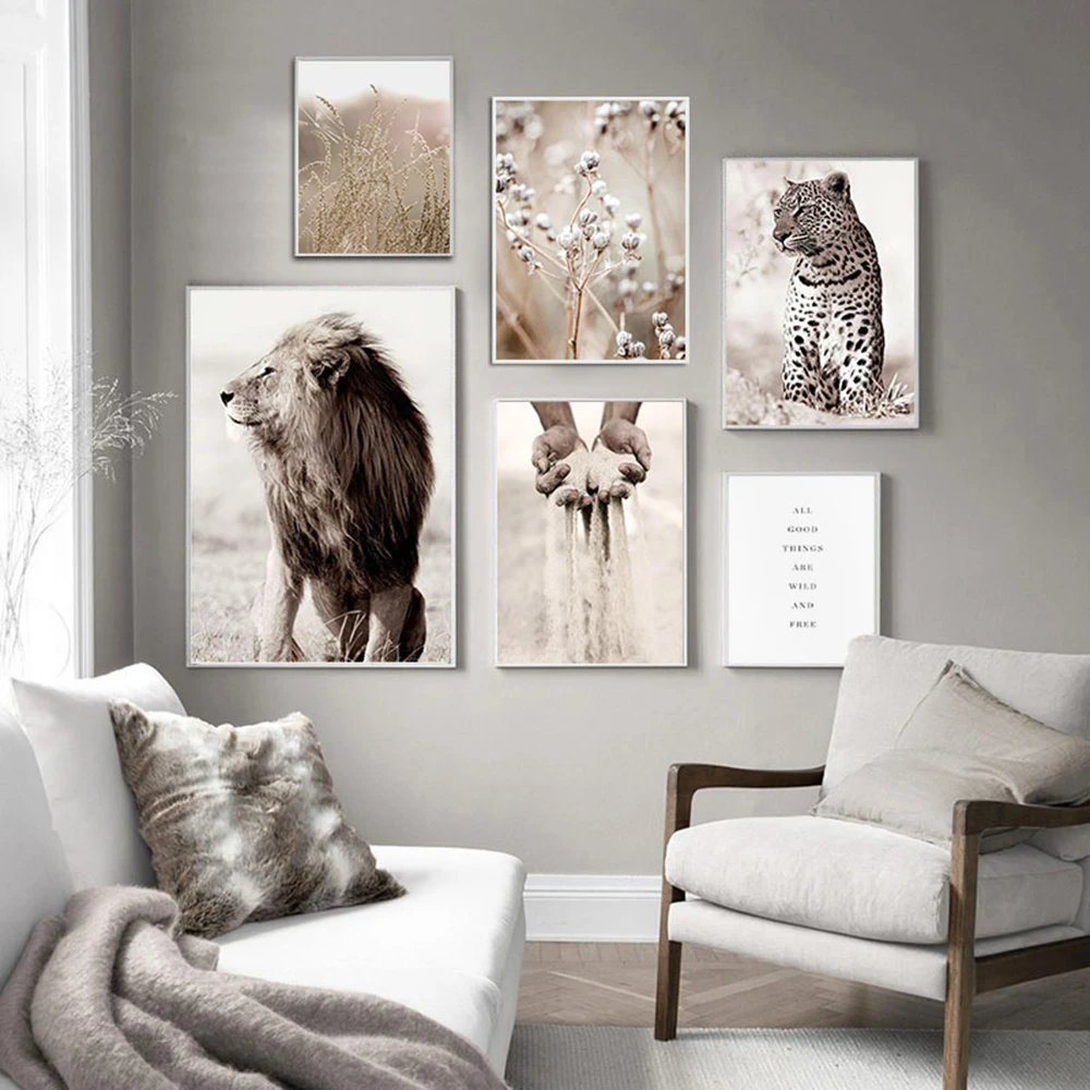 Современный абстрактный настенный постер в скандинавском стиле ретро лев леопард Одуванчик животное холст Картина гостиная спальня офисное украшение