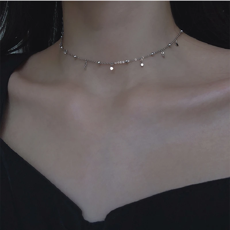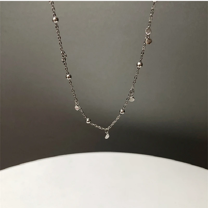Минималистичное ожерелье из серебра 925 пробы с цепочкой до ключицы для женщин, трендовая Элегантная Модная цепочка с круглыми бусинами и кулоном для вечеринки, ювелирное изделие в подарок