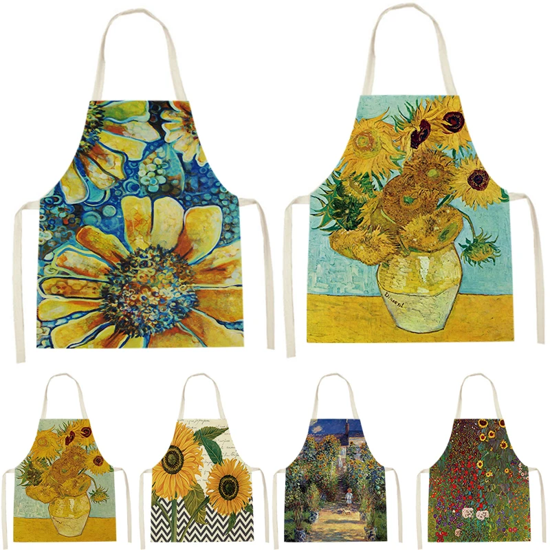 Подсолнух растительный принт картина маслом желтое растение без рукавов фартук для кухни Pinafore женский домашний приготовления выпечки талии анти-жирный