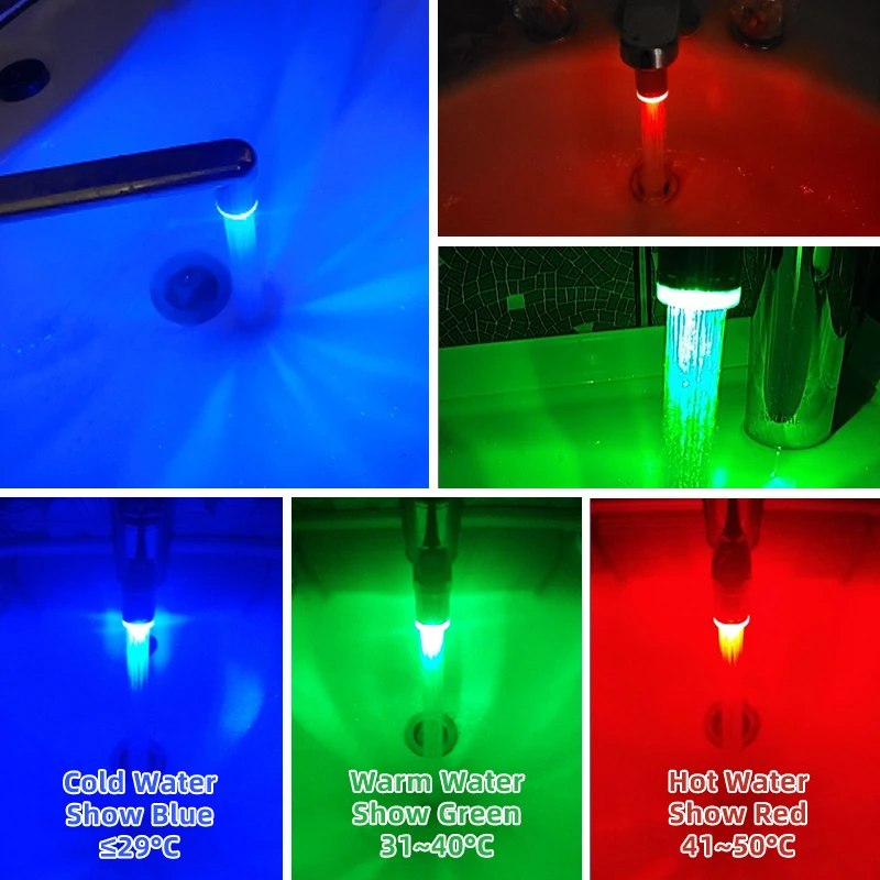 Светодиодный кран, автоматически светящийся в воде, 3 цвета, светодиодный светильник, кухонный кран для ванной комнаты, контроль температуры, душевая головка, 2019