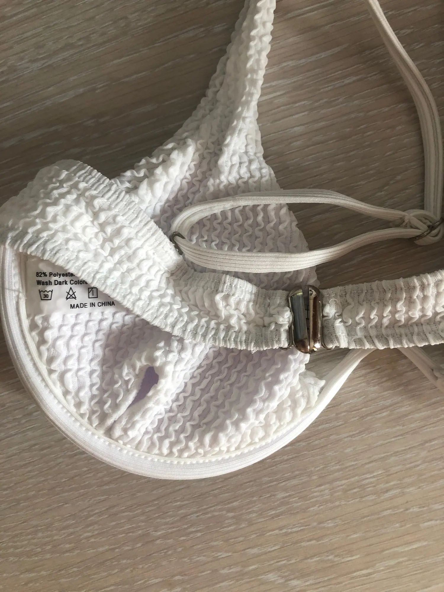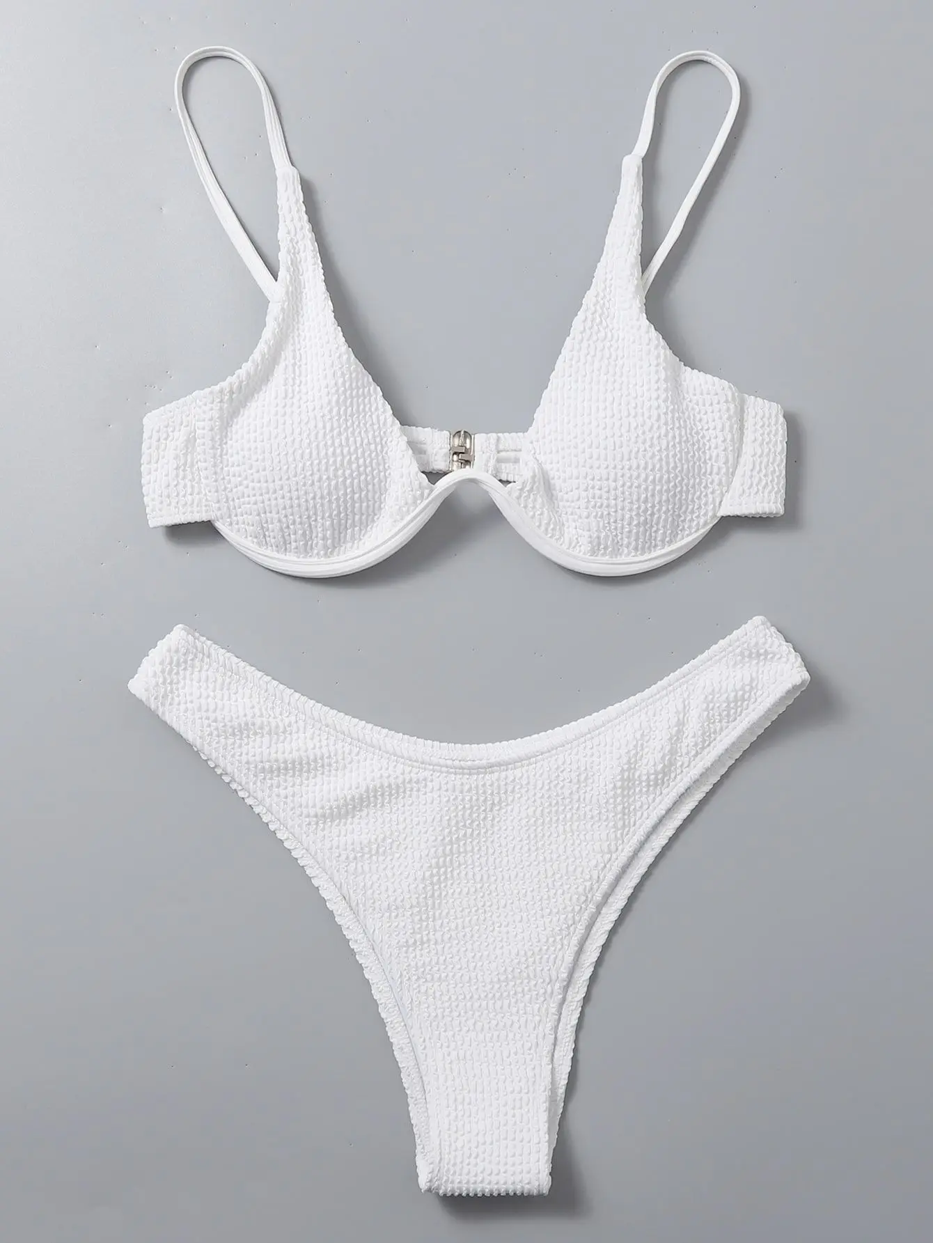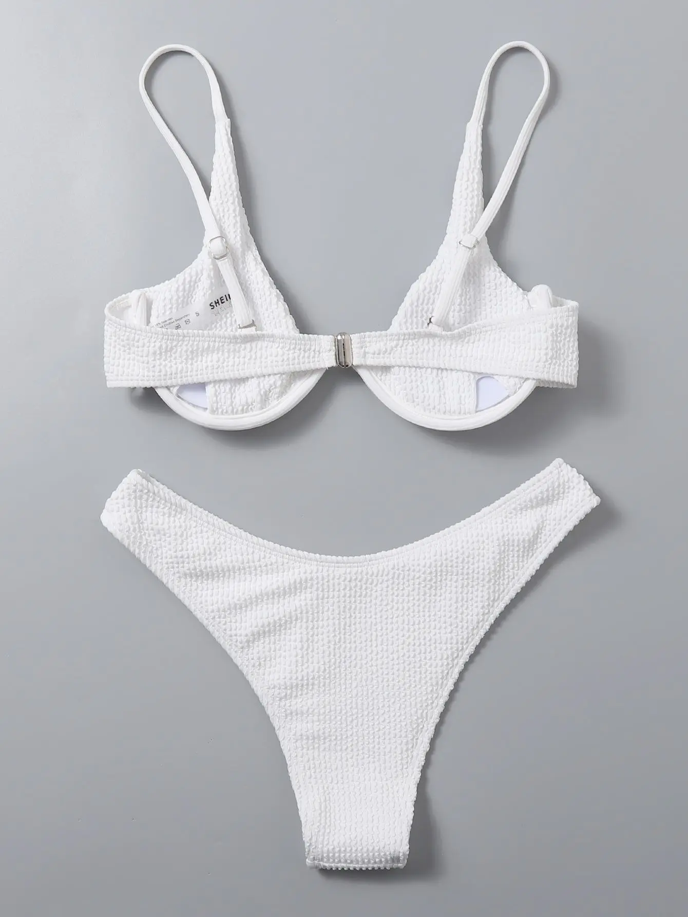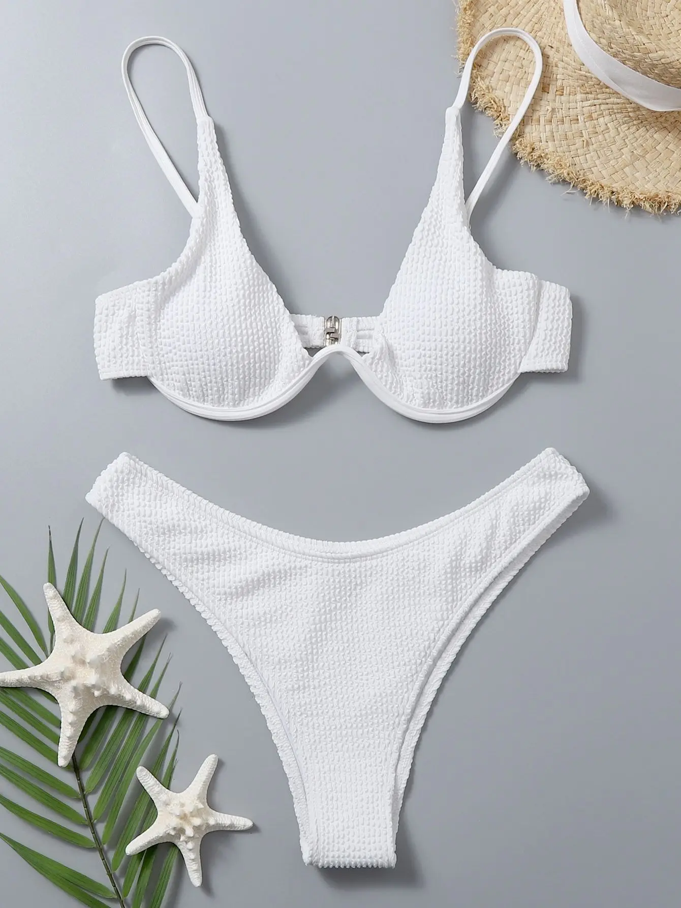 Сексуальное бикини на косточках с V-образным вырезом, 2021, Женский однотонный белый купальник пуш-ап с высокой талией, женский купальный костюм, плиссированный купальник, бикини