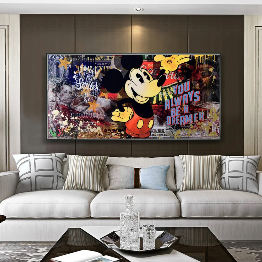Дисней Микки Маус Деньги граффити художественные плакаты и принты доллар уличное искусство настенные картины Искусство картинки домашний декор куадро