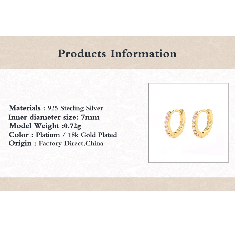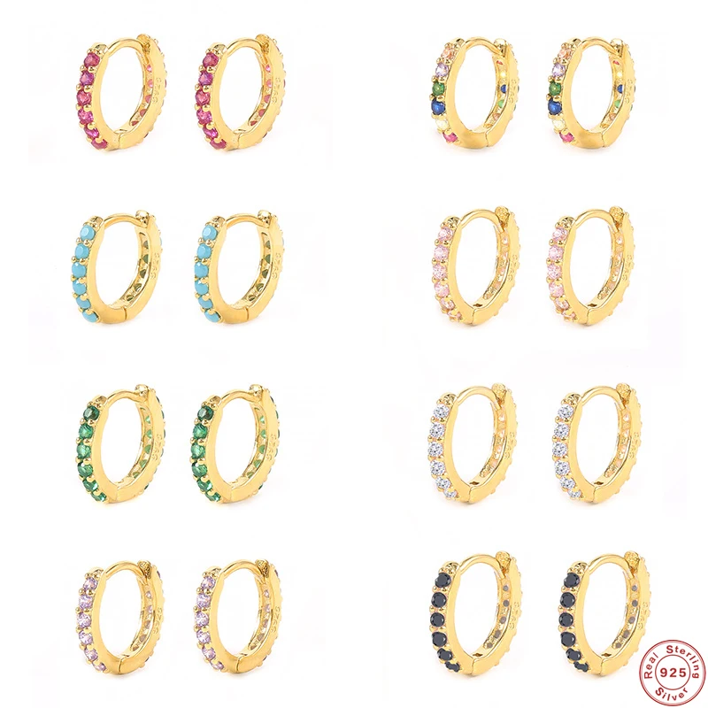 925 стерлингового серебра маленький 7 мм Huggies Серьги для женщин, модные роскошные радужной расцветки с украшением в виде кристаллов обручи пирсинг украшения Pendiente
