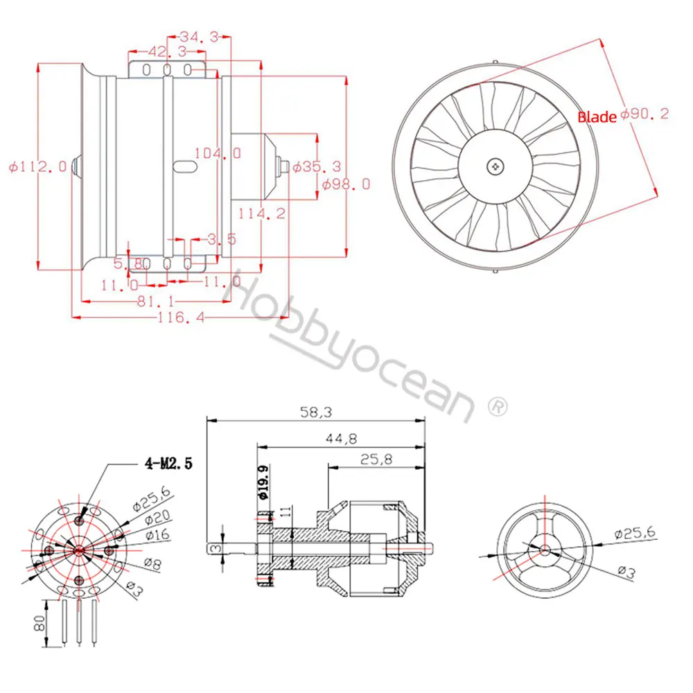 Hobbyocean 90 мм EDF самолет с 12 лопастями воздуховод вентилятор 6S 1450KV двигатель или 8S 1100KV для RC/реактивный самолет