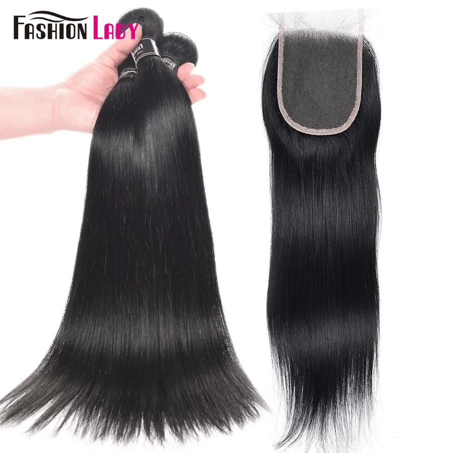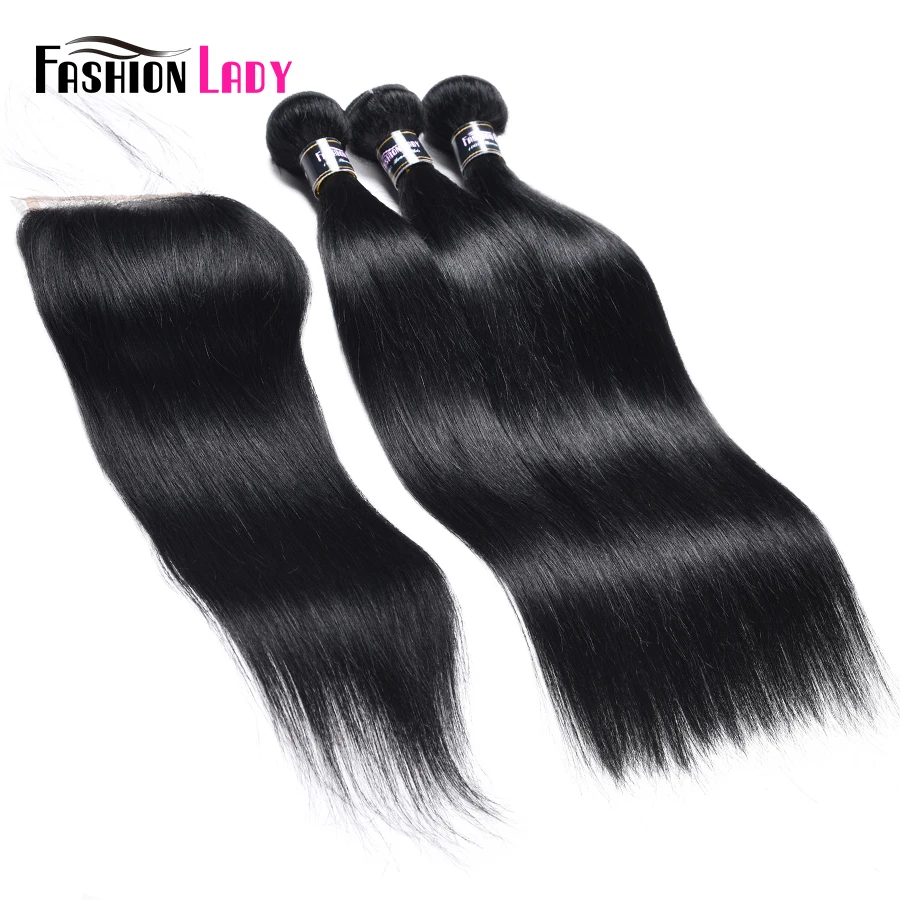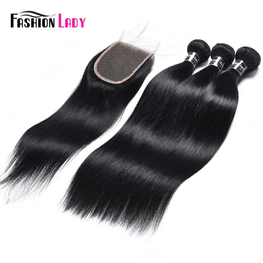 Модные женские предварительно окрашенные черные пряди с закрытием, 3 шт. с закрытием, бразильские прямые человеческие волосы без Реми