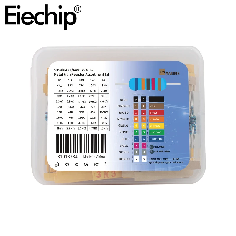 14W 1% металлического пленочного набор резистор, фиксированный резисторы набор diy Электронный набор сортированных 30 50 130 значения 0,25 Вт комплект резисторов 1 Ом 10 м