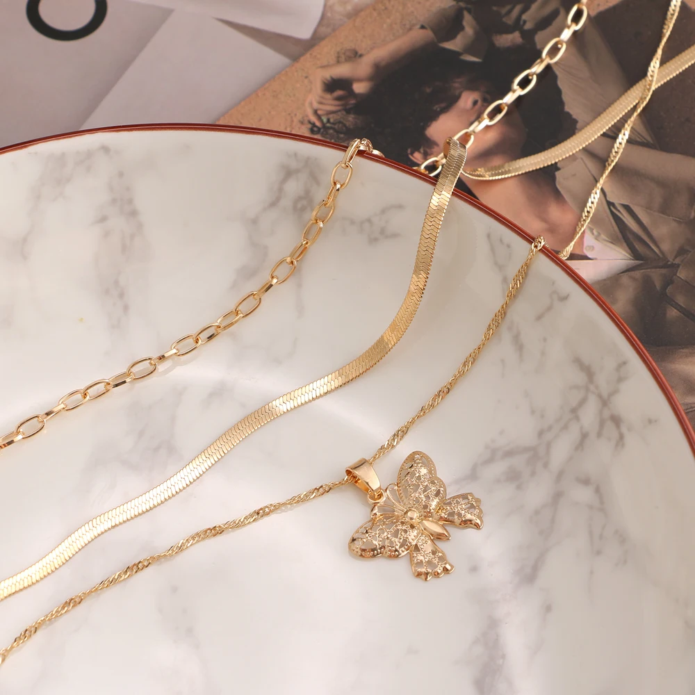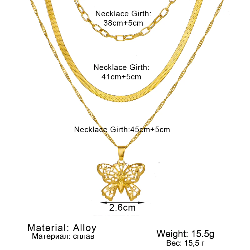 Цепочка многослойная с подвеской-бабочкой женская, ожерелье геометр...