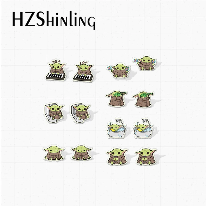 2021 Новое поступление Kawaii Детские йода любит душ принимать ванну жизнь граффити эпоксидной смолы акриловые серьги-гвоздики с эпоксидной смолой