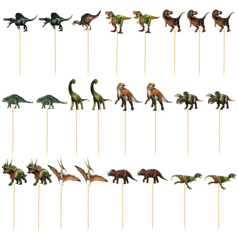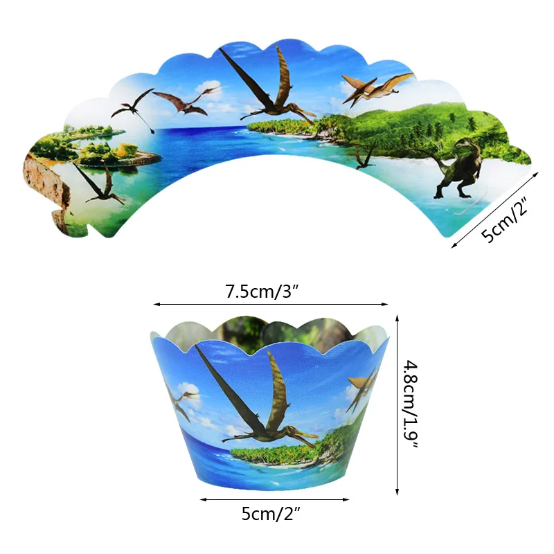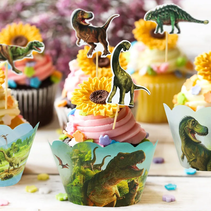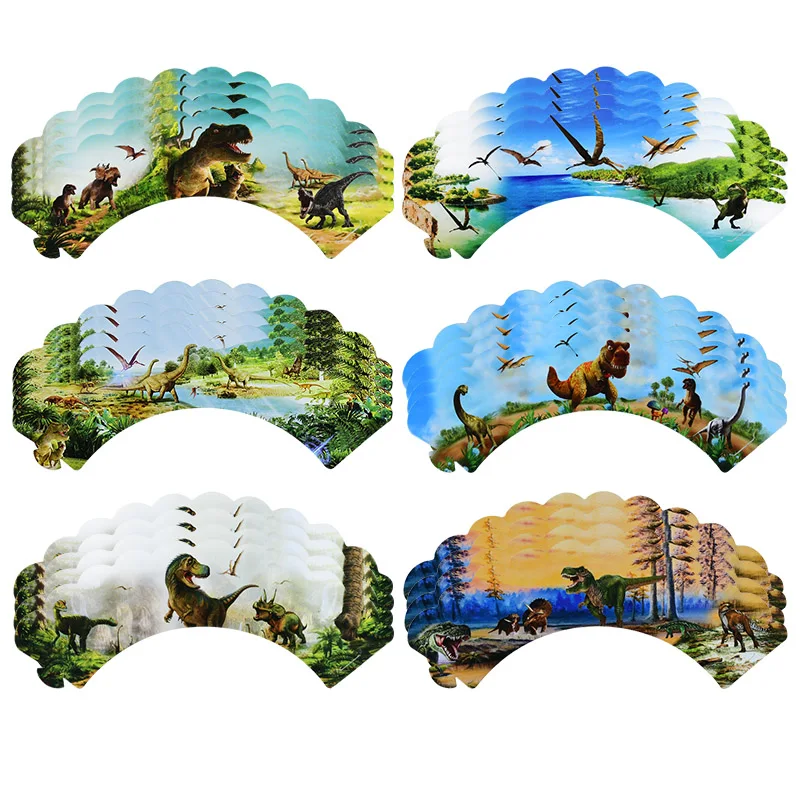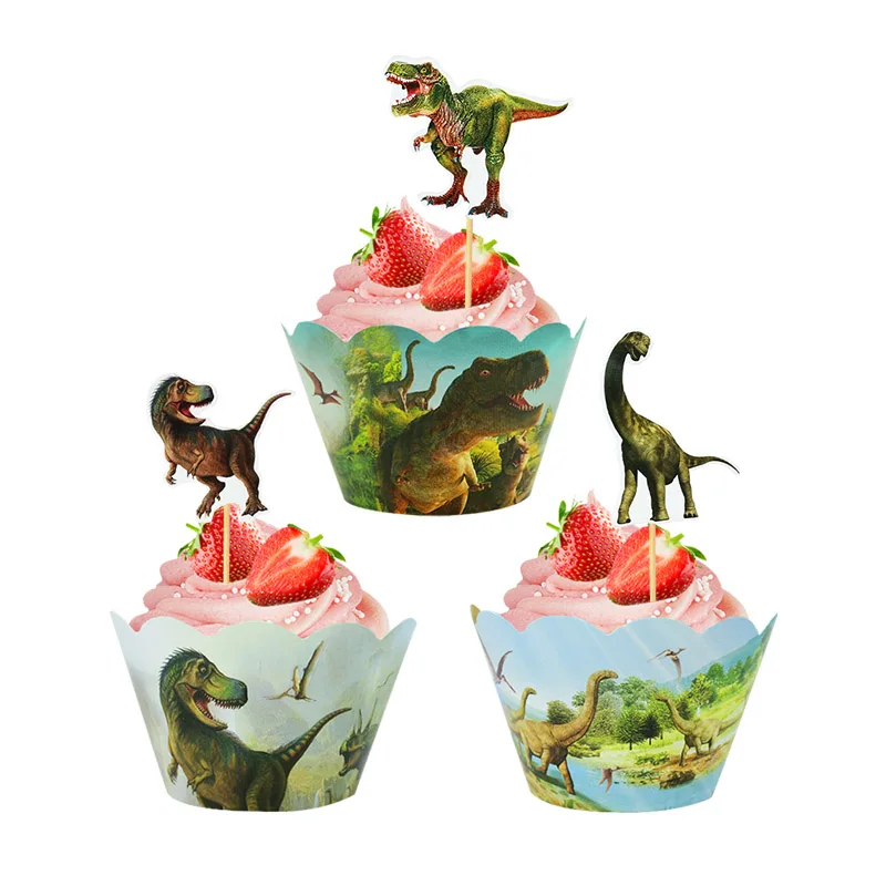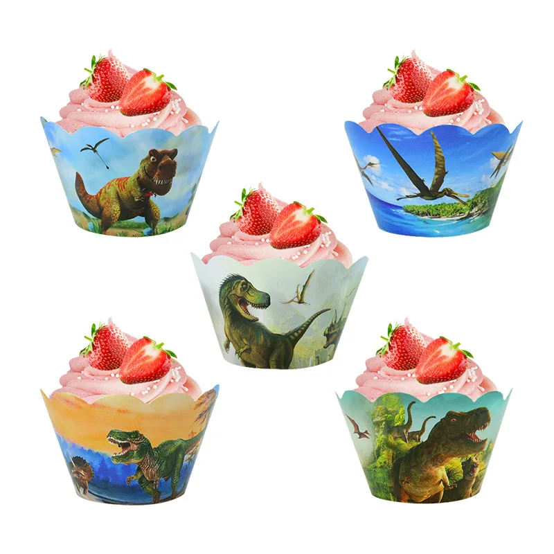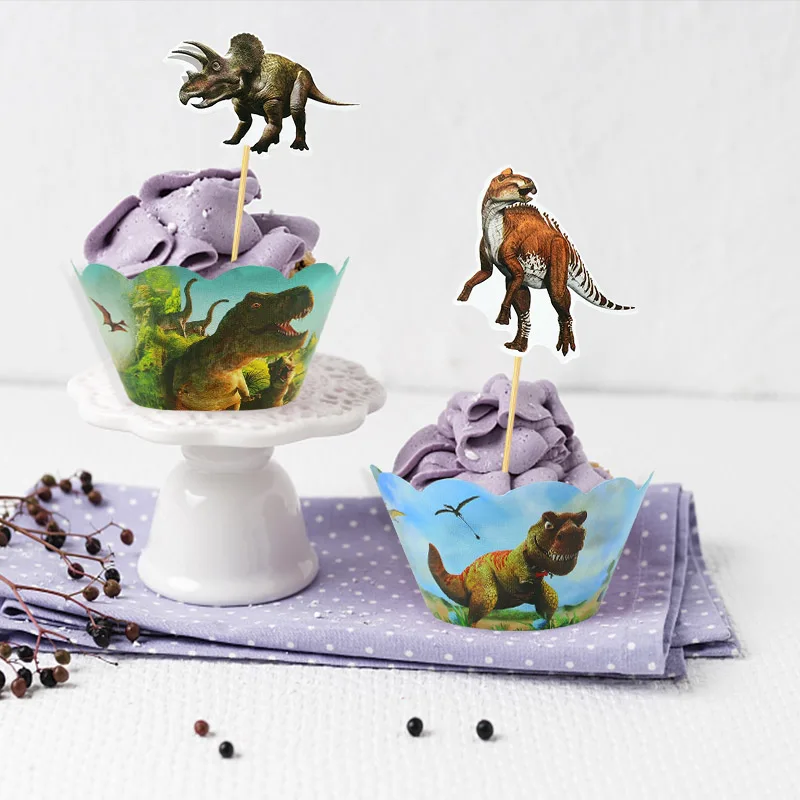24 шт., обертки для капкейков с динозаврами на день рождения
