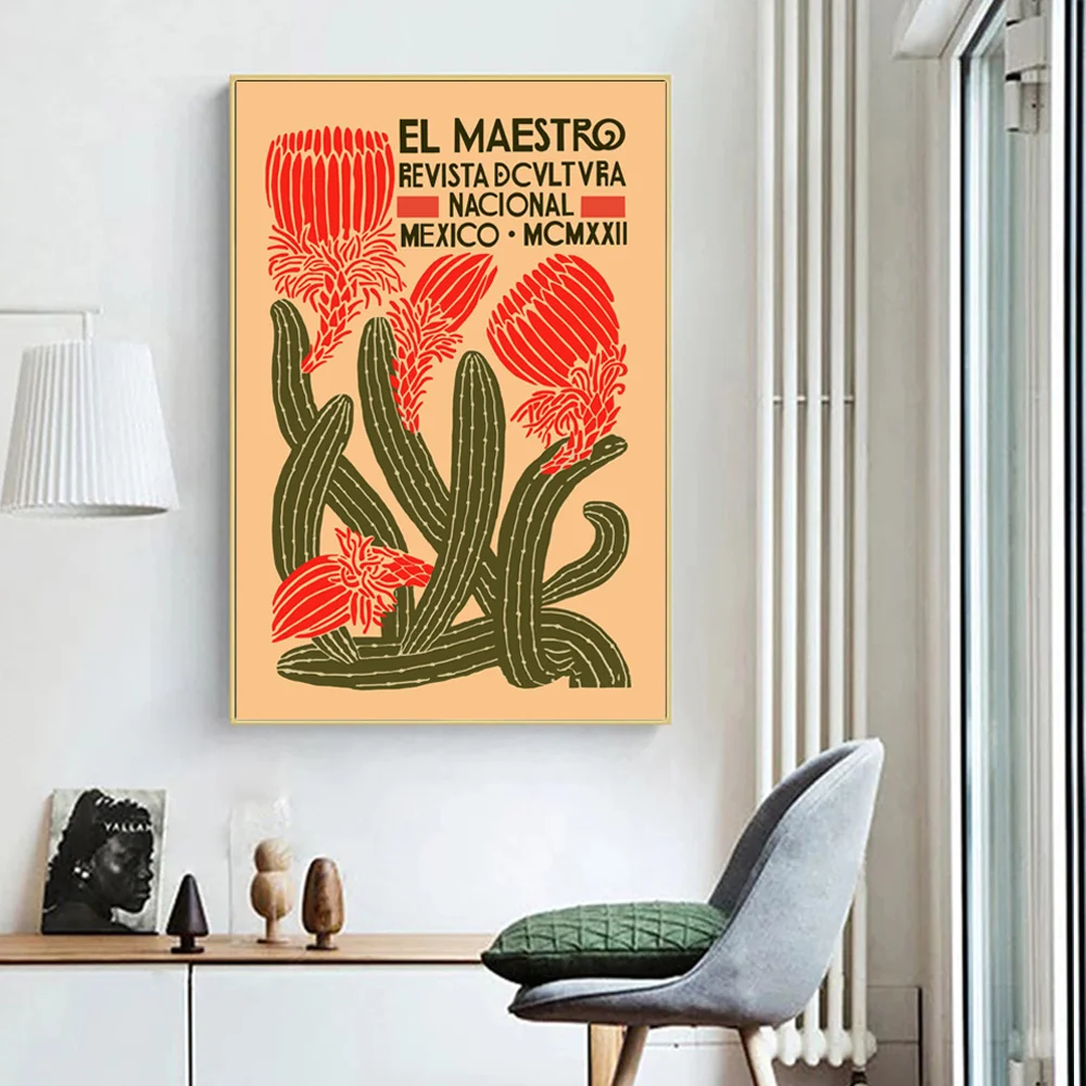 Ретро абстрактный мексиканский Кактус Цветок настенное Искусство Хо...