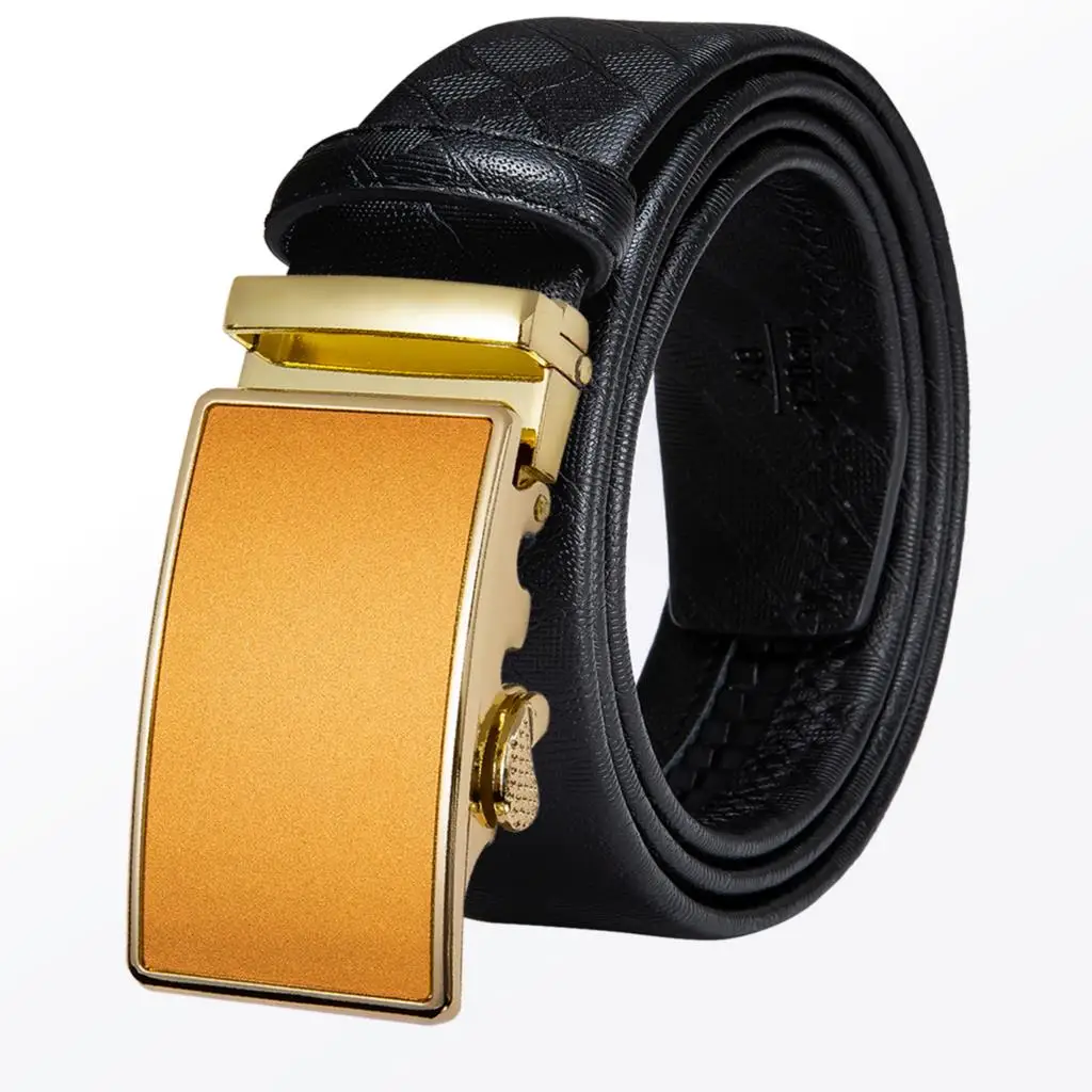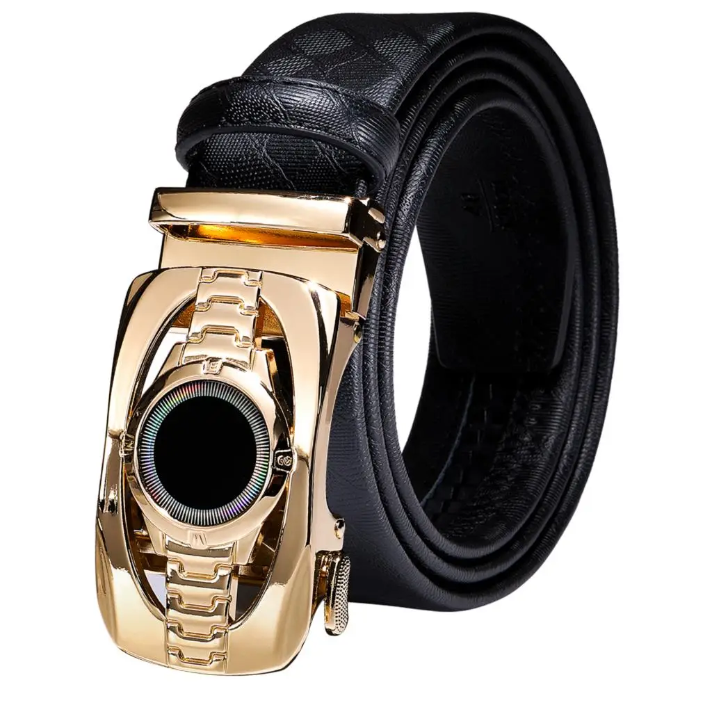 Ремень мужской кожаный с автоматической пряжкой, золотого, черного и серебряного цветов