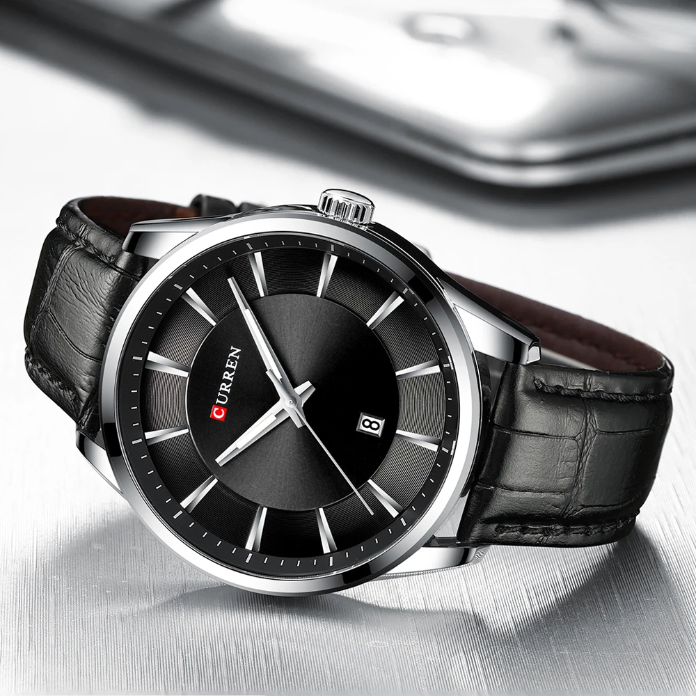 Часы наручные CURREN Мужские кварцевые, люксовые брендовые деловые, с кожаным ремешком, 45 мм