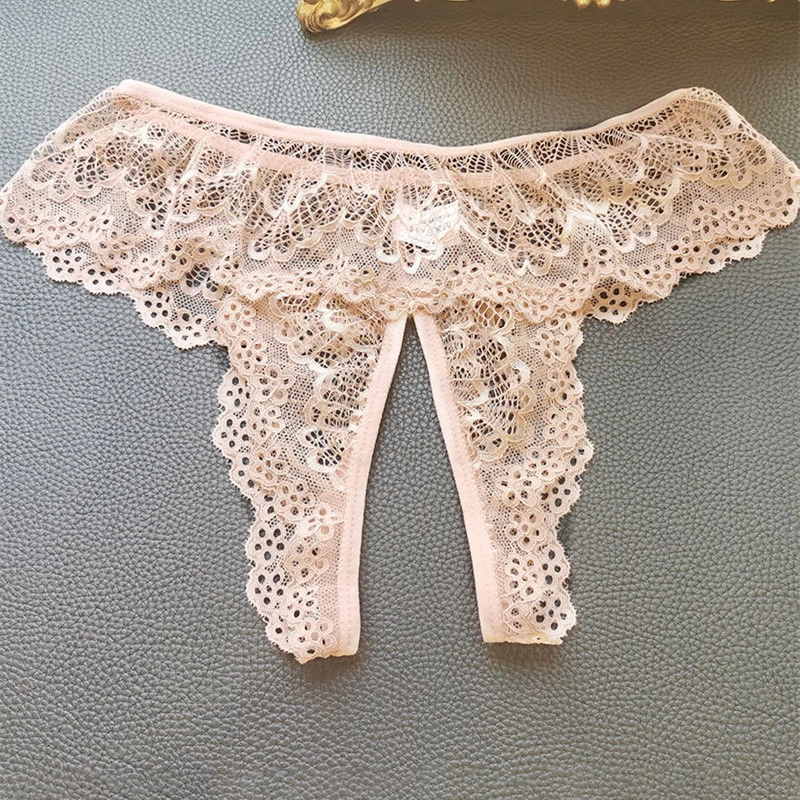 Розового и фиолетового цветов Кружева цветочные трусики размера плюс стринги с открытой промежностью для сексуальное прозрачное белье нижнее белье Для женщин Эротическое белье M - 5XL