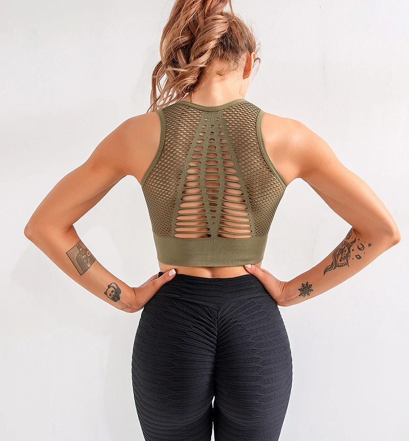 Спортивный бесшовный бюстгальтер, сексуальное ажурное дышащее Спорт...