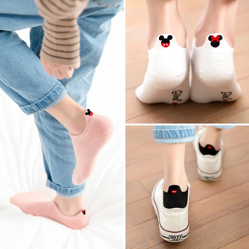 Новые женские носки Disney с Микки и Минни, короткие носки на весну и лето, милые короткие носки для девочек, хлопковые корейские женские спортивные носки с животными