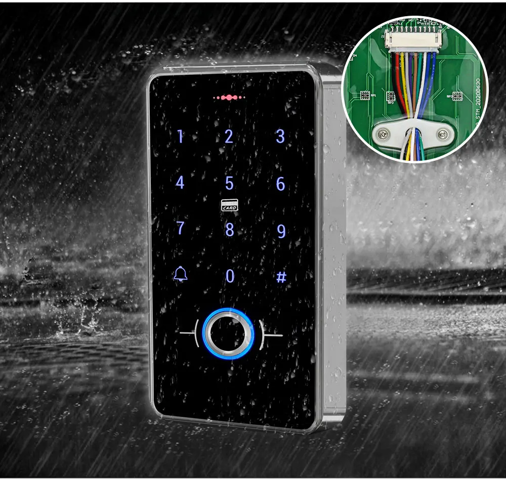 Материал: АБС-пластик с акриловой сенсорной панелью клавиатурыРабочая частота: 13,56 МГцСовместимый тип RFID карты: Поддержка MF1 или MF1 совместимая картаМетод идентификации: отпечаток пальца, RFID карта, парольЕмкость отпечатка пальца: 120Емкость карты RFID: 120Универсальный пароль: 1 командаРасстояние считывания карт: 0-10 смВодонепроницаемый уровень: IP68 водонепроницаемый, может быть установлен на открытом воздухеРабочее напряжение: 12 В постоянного токаРабочий ток: <30 мАВремя открытия двери: 0 ~ 255 секундРабочая температура: -20 ℃ ~ 70 ℃Рабочая влажность: 20%-90% относительной влажностиИнтерфейс Wiegand: Wiegand 26 битПодсветка: Да, с синей подсветкой, может нормально работать даже в темноте.Функция дверного звонка: ПоддержкаФункция сигнализации: ПоддержкаРазмер: 140*70*16 мм