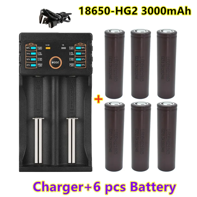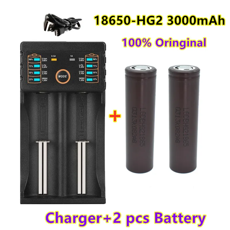 100% оригинальный 18650 аккумулятор HG2 3000 мАч 3,7 В перезаряжаемая батарея для HG2 18650 литиевая батарея 3000 мАч + зарядное устройство