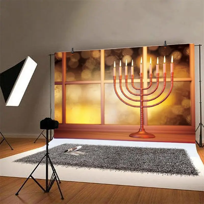 Светлый фон Hanukka для фотосъемки счастливая хазана Праздничная Вечеринка фон для фотосъемки Менора украшение в виде еврейской свечи баннер Ханука