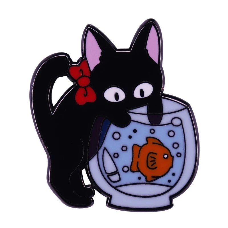 Эмалированная брошь в виде черного кота Jiji Magic Witch Studio Ghi...
