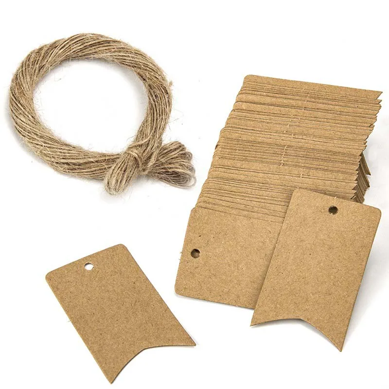 100 шт. крафт бумажные бирки для подарков с 20 м строка пустая бирка для маркировки карта меню самодельные подарки Свадебная вечеринка украшения дома
