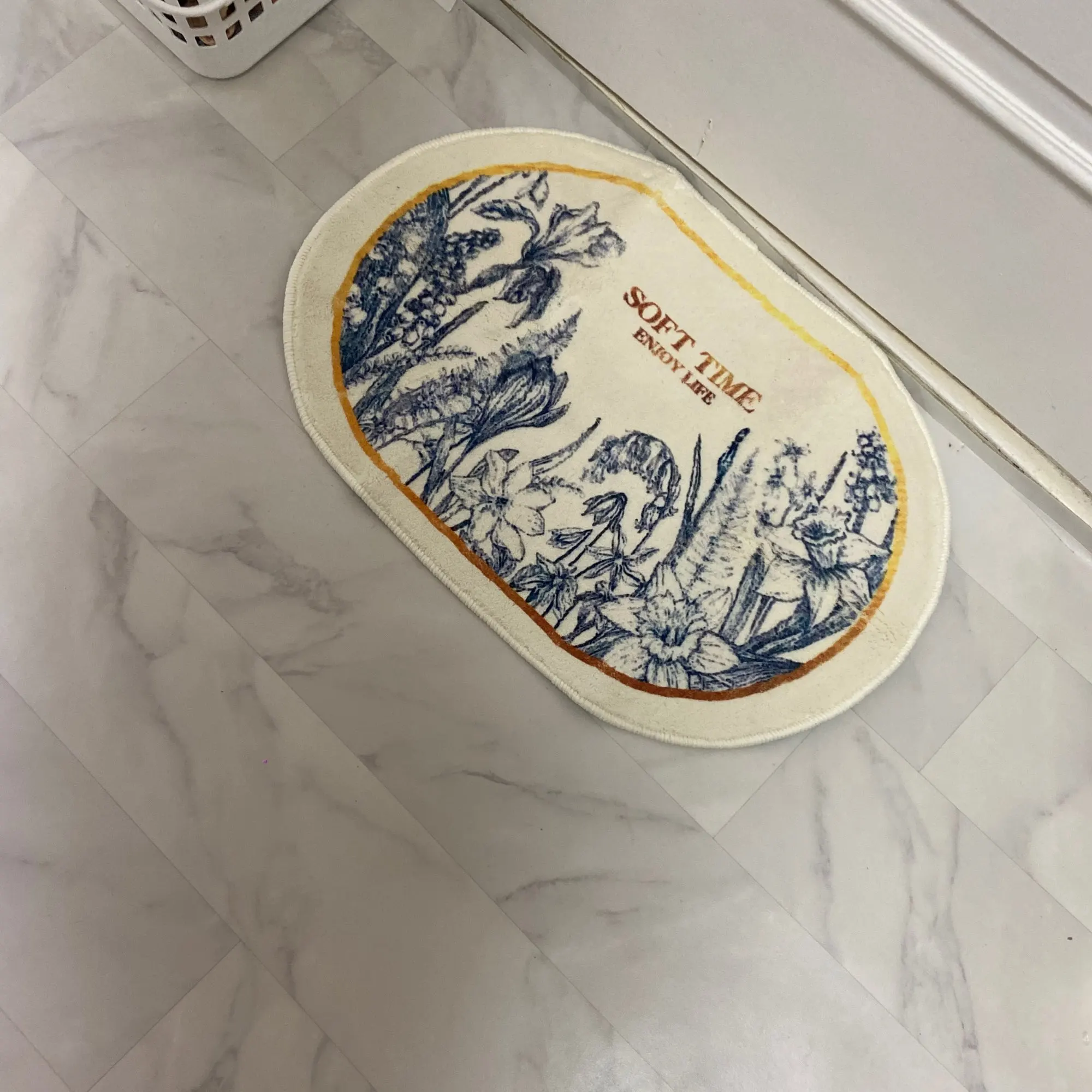 Овальный коврик для ванной, Нескользящие Коврики для ванной комнаты, влагопоглощающий коврик для гостиной, пушистый напольный, коврик для прихожей