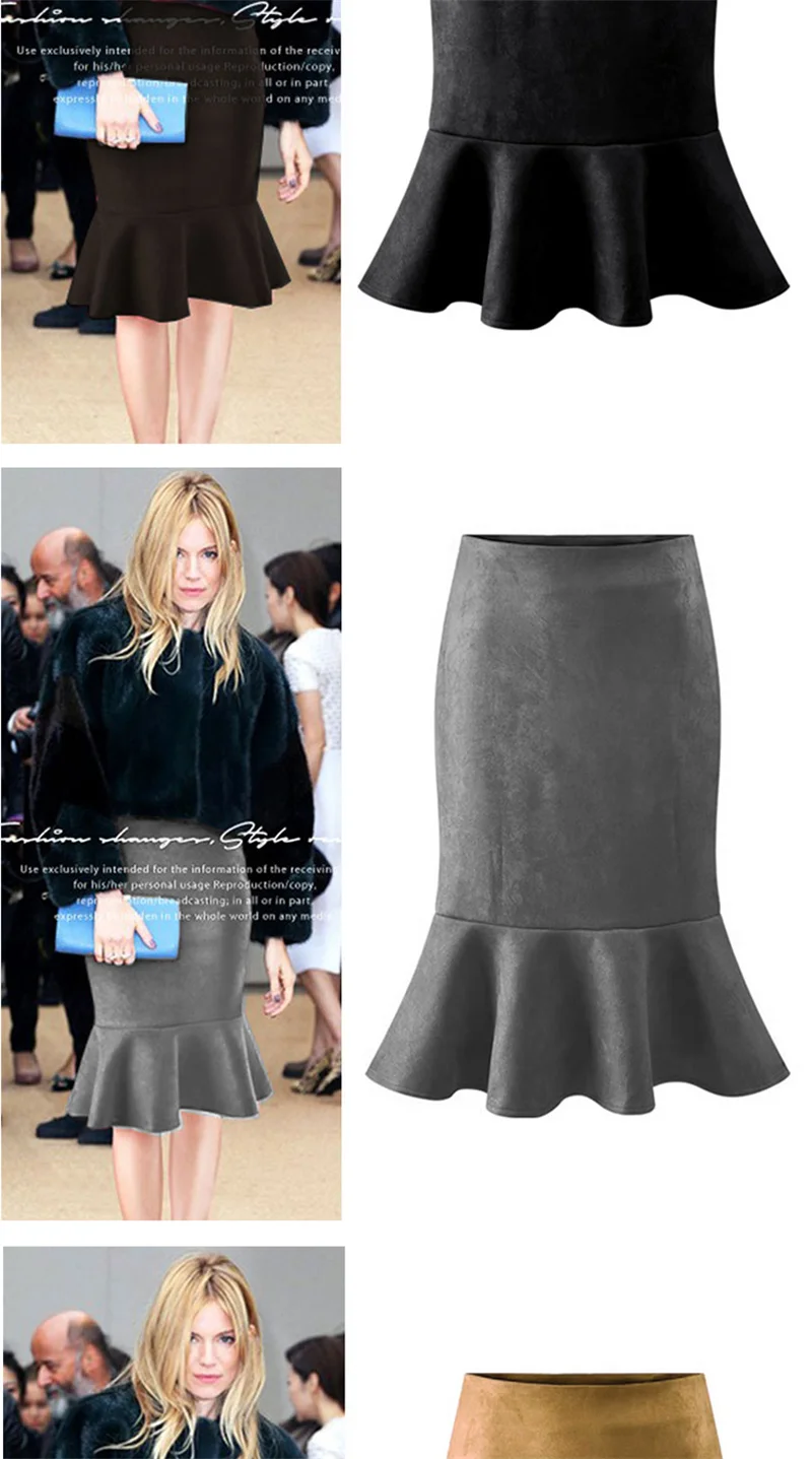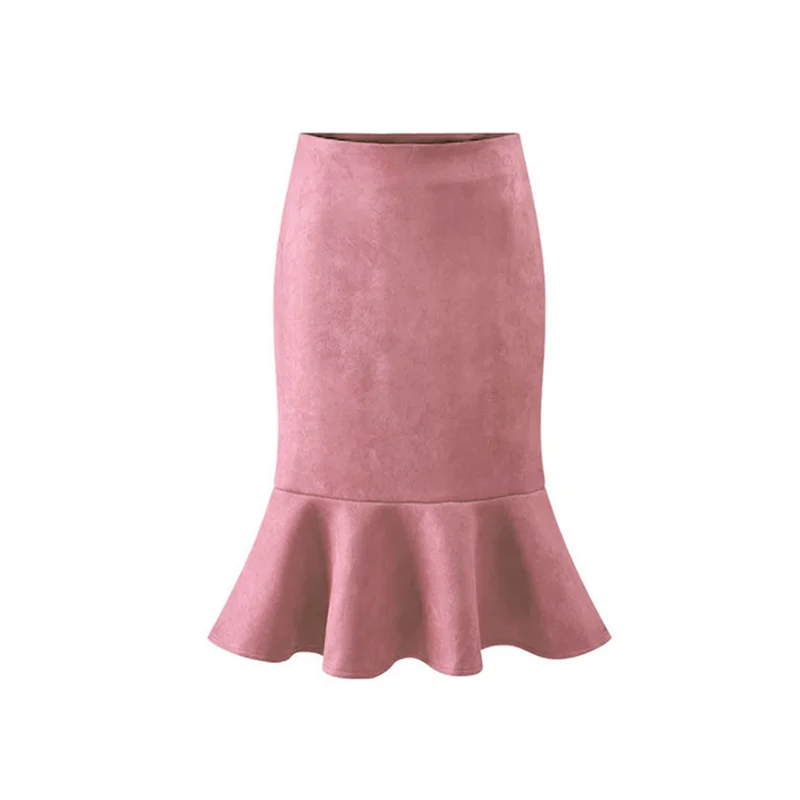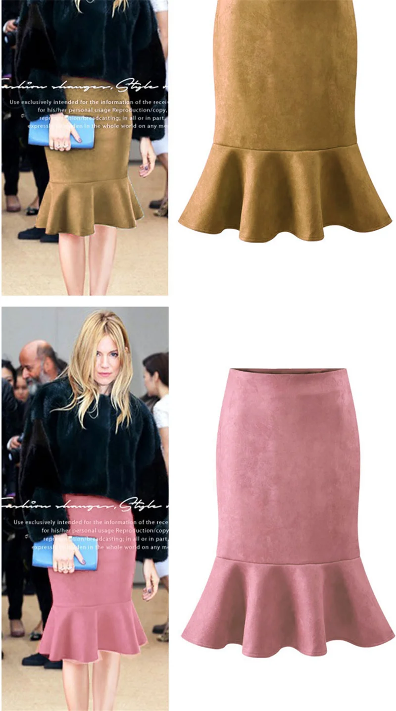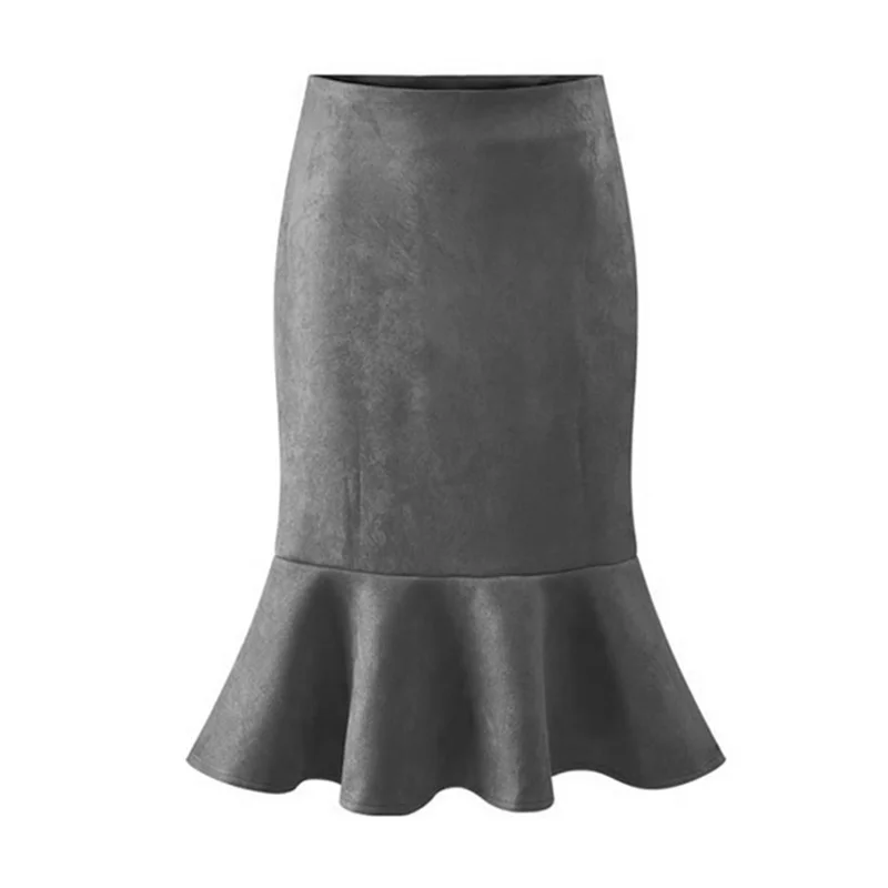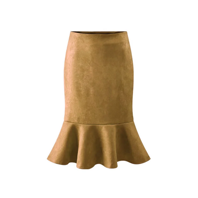 Женская длинная замшевая кожаная юбка, Демисезонные женские юбки миди с оборками и юбкой-годе, пикантные элегантные юбки с высокой талией