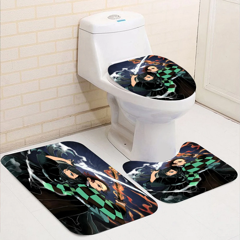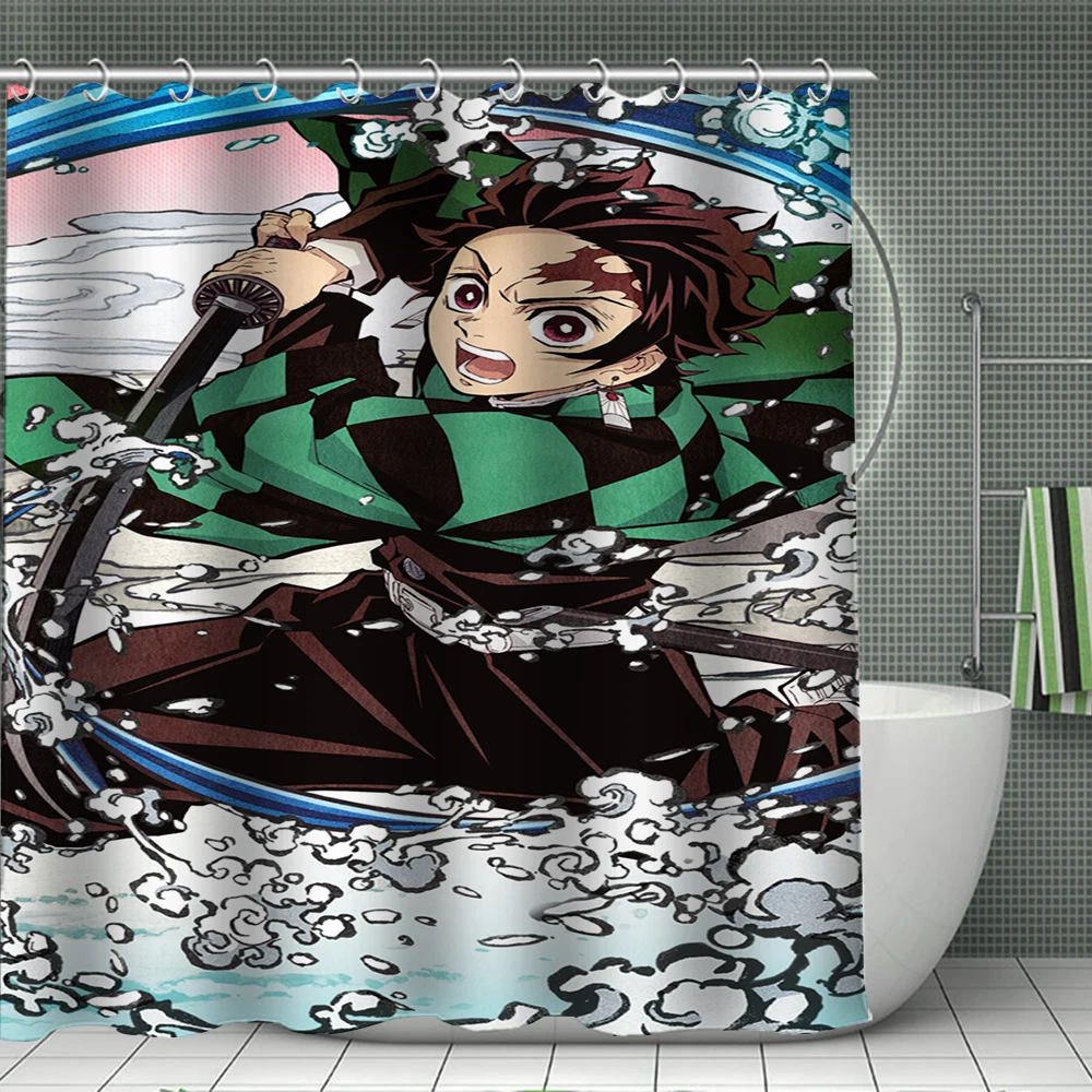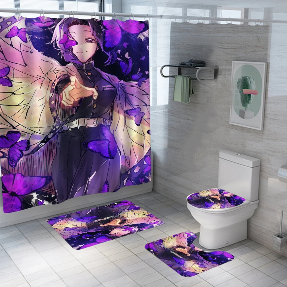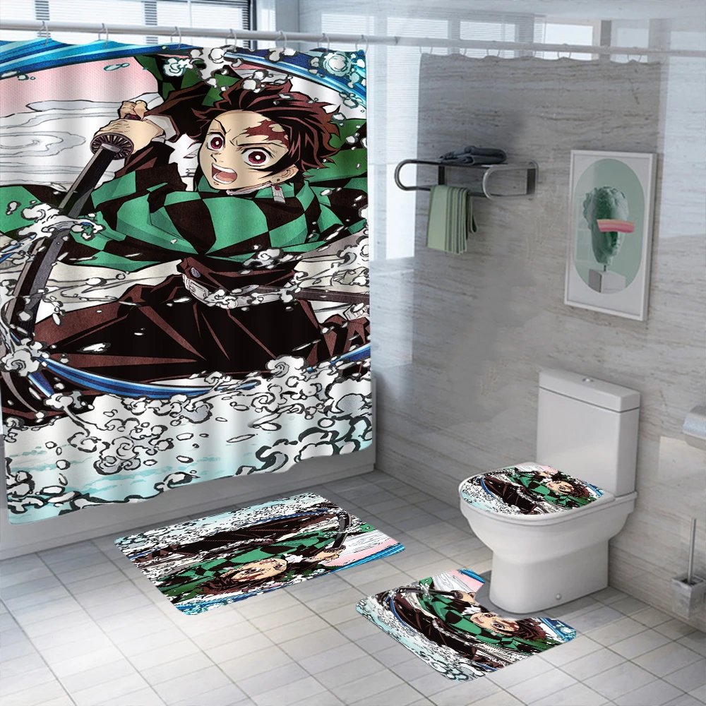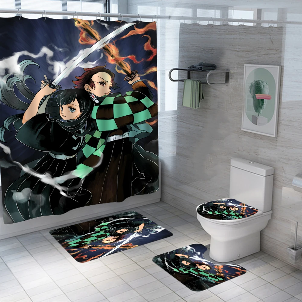Занавеска для душа с 3D принтом рассекающий демонов, водонепроницаемая моющаяся занавеска для ванной из полиэстера, Противоскользящие коврики, крышка для туалета, набор ковриков для ванной