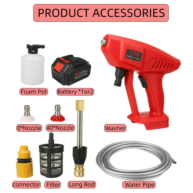 Цвет: красный/синийМатериал: АБС-пластик и медьНапряжение: 21 в/25 вДавление Продукта: 30 барДавление Продукта: 435PSIРасход воды: 4 л/минЗарядное устройство Напряжение: AC 100-240V 50/60HzДлина водопровода: 5 метровДиапазон: 2-3 метра12 В Емкость батареи: 15000 мАчЕмкость батареи 25 в: 15000 мАчЯщик для хранения Размеры: 31x25x12cm