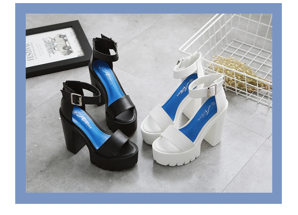 Fashion elementthick heels,Platform,Ankle strap,open,toe