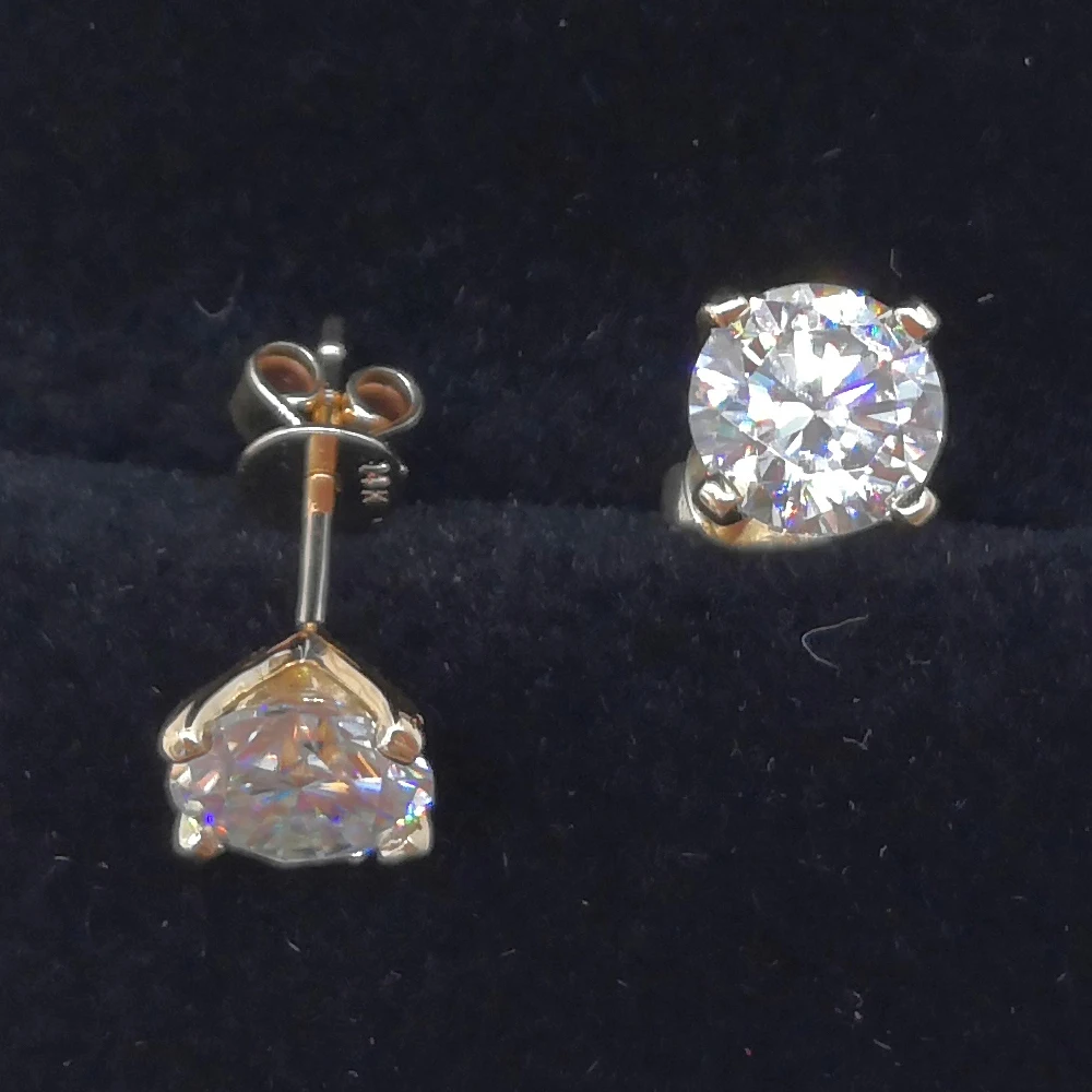 Ювелирные наборы из 18-каратного желтого цвета: золотистый, серебристый 2 карат серьги-гвоздики для женщин Подарок на годовщину свадьбы обручение вечерние каждый 1 карат Круглый Синтетический бриллиант