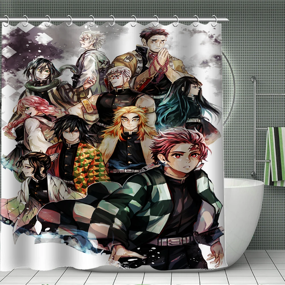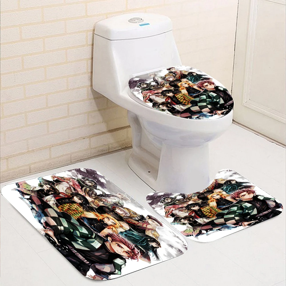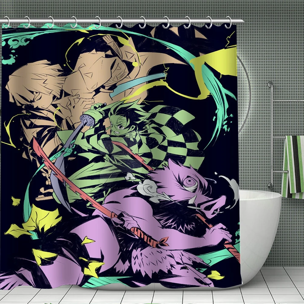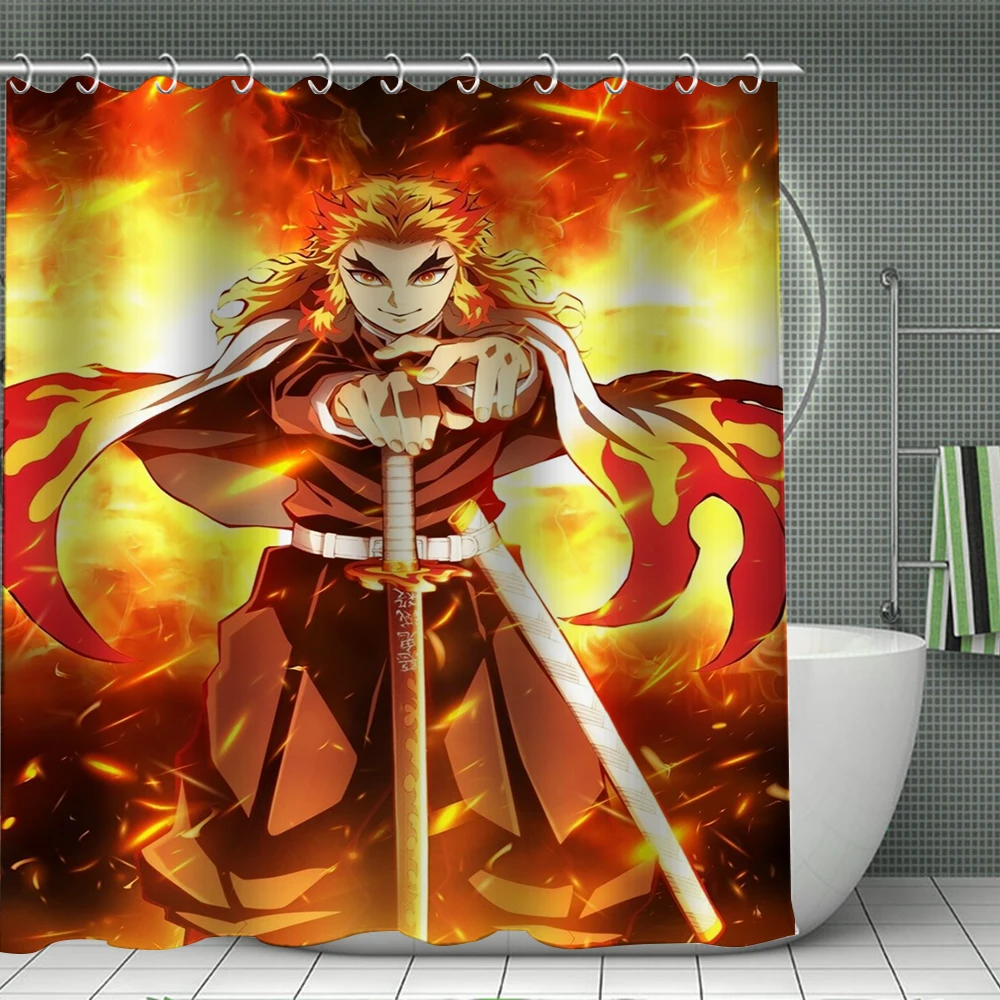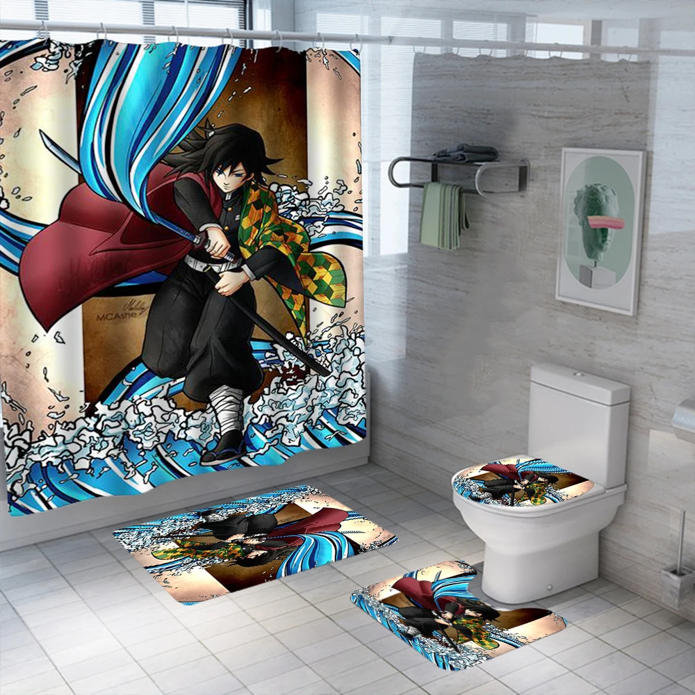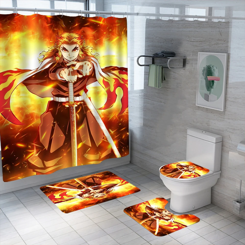 Занавеска для душа с 3D принтом рассекающий демонов, водонепроницаемая моющаяся занавеска для ванной из полиэстера, Противоскользящие коврики, крышка для туалета, набор ковриков для ванной