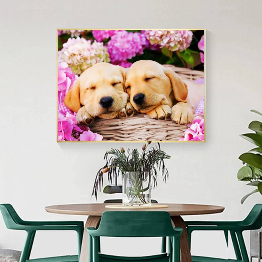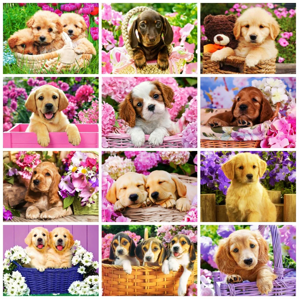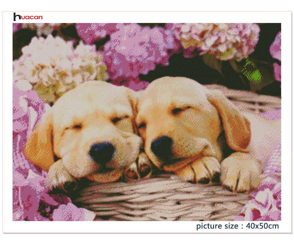 Алмазная мозаика Huacan с изображением собаки золотистого ретривера, мозаика в виде корзины с вышивкой животных, наклейки на стену с цветами