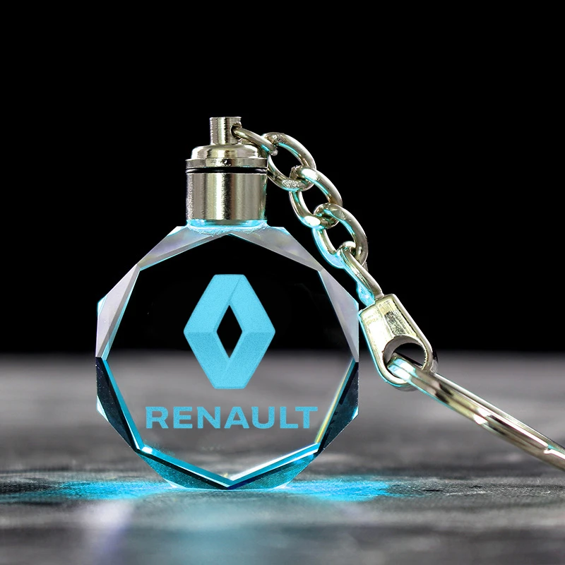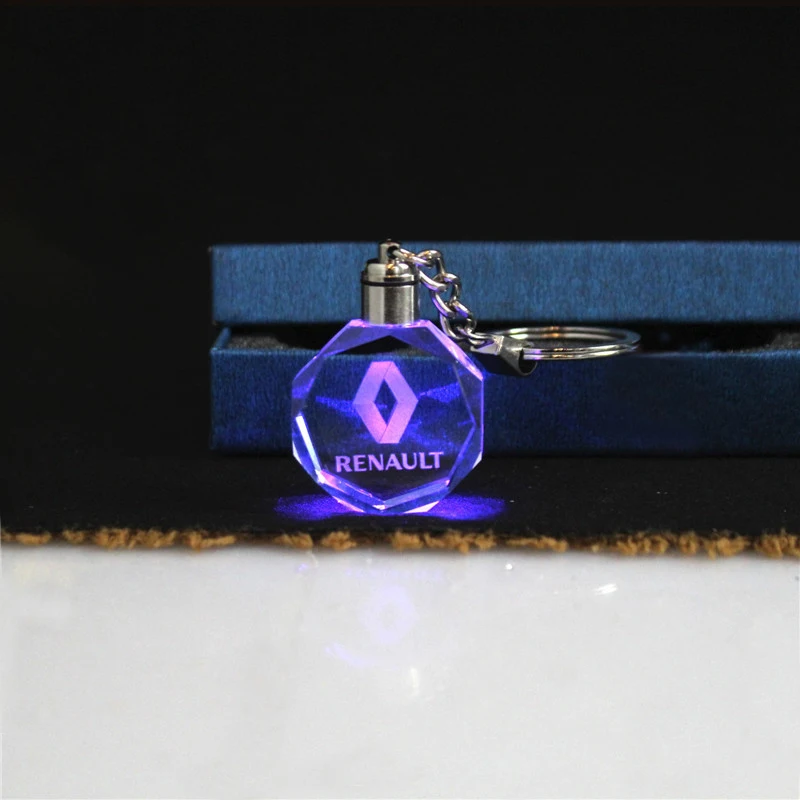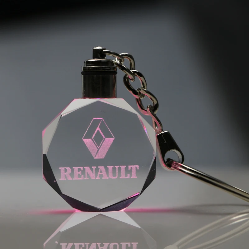 Хрустальное стекло, автомобильный Стайлинг, цветные огни, брелок для значка Renault, парный, подвесной брелок, деловой подарок, автомобильные аксессуары, 1 шт.