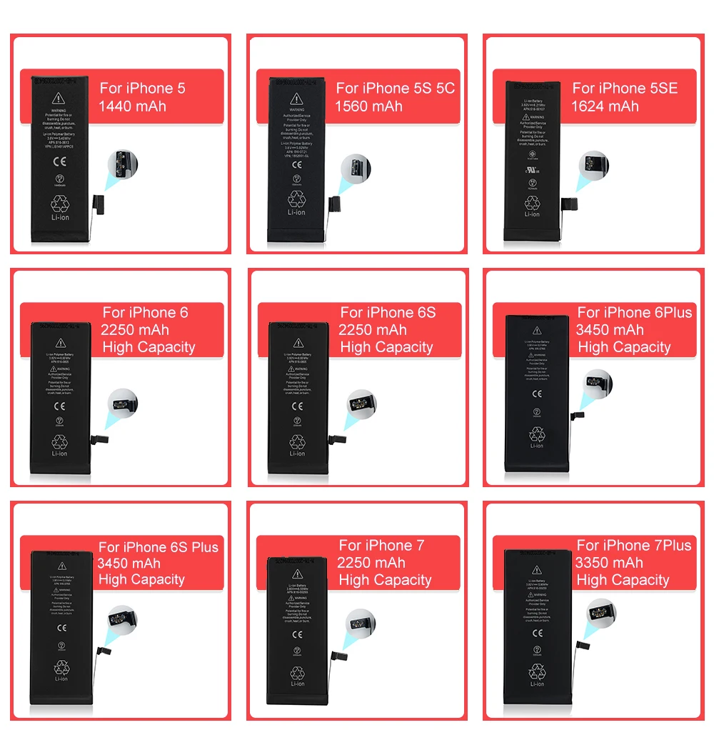 Батареи мобильного телефона Camason используют ту же печатную плату, что и iPhone, с более высокой совместимостью, более надежным качеством и безопаснее. При том же размере, наш аккумулятор имеет увеличение емкости на 18%-31% по сравнению с оригинальным аккумулятором. С нашей батареей ваш телефон может иметь более длительное время работы.