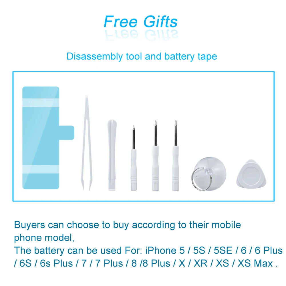 Покупатели могут выбрать, чтобы купить в соответствии со своей моделью мобильного телефона, аккумулятор может быть использован для: iPhone 5 / 5S / 5SE / 6 / 6 Plus / 6S / 6s Plus / 7 / 7 Plus / 8 /8 Plus / X / XR / XS Макс.