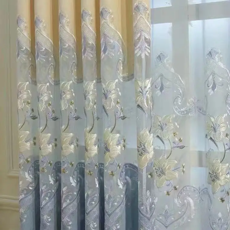 Китайско-европейские пустотелые водорастворимые вышитые занавески для высококачественной виллы, спальни, гостиной, светонепроницаемые занавески на заказ
